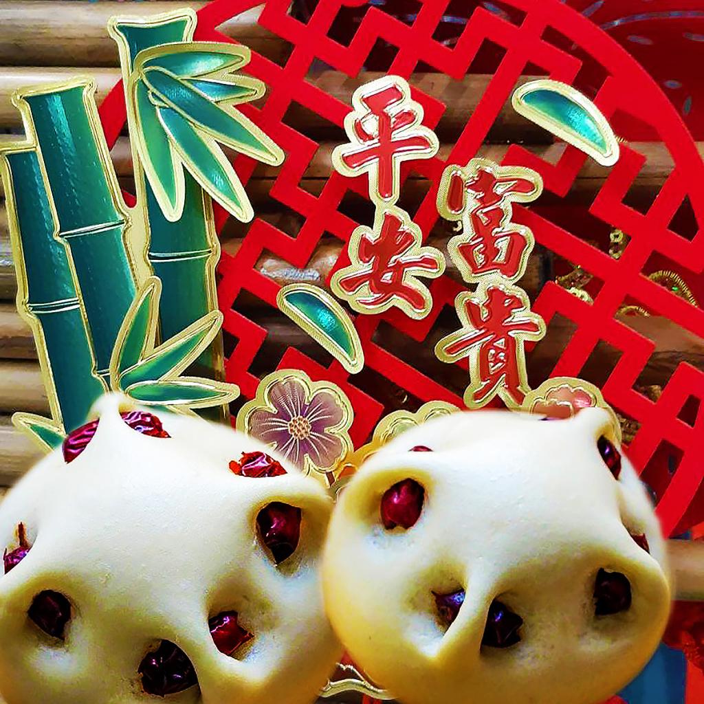 北方人熱愛麵食,年味都藏在麵粉裡, 山東人傳統的年節美食之一為「棗餑餑」。煙台、膠東地區盛產紅棗,棗餑餑就是大饅頭的變身,嵌入五粒紅棗代表「五福臨門」,九粒紅棗寓意「長長久久」,祝福「過年吃個棗,年年過得好」!中興莊眷村媽媽們在簡陋廚房中延續故鄉味。