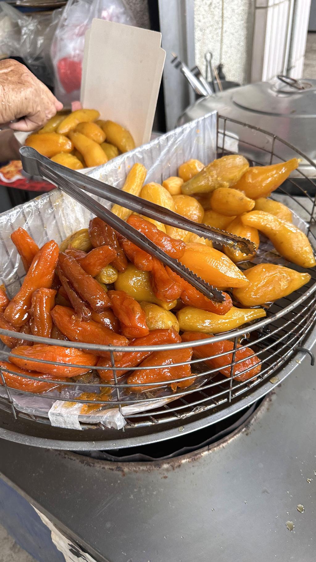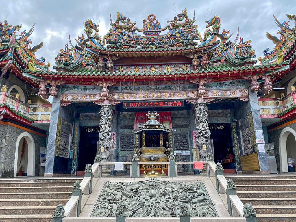 竹山保安宮旁賣著據說是被嘉慶太子金口玉言而變小的「竹山地瓜」,從熙來攘往的人群可以看出保安宮是當地香火相當鼎盛的一間宮廟。保安宮又叫做「李勇將軍廟」,主祀神是傳說中陪伴嘉慶太子的李勇將軍,也是嘉慶君遊臺灣故事中最有代表意義的故事景點。