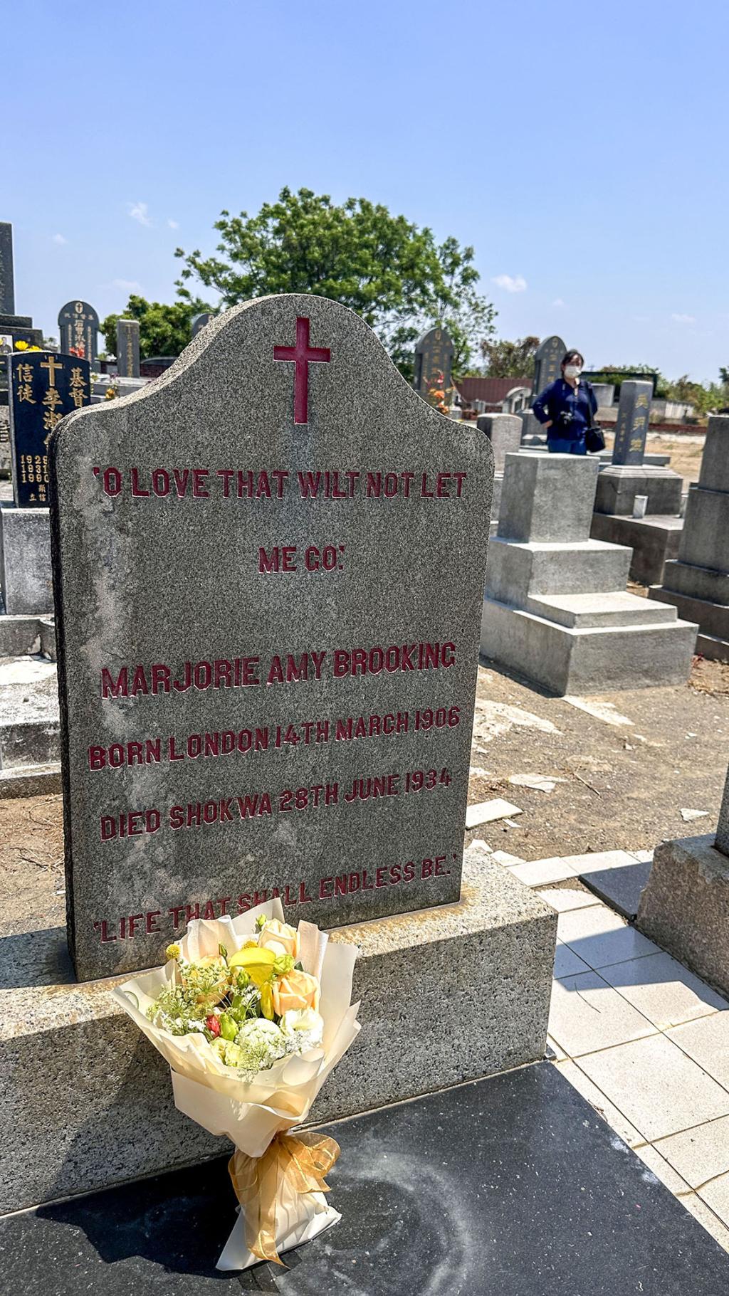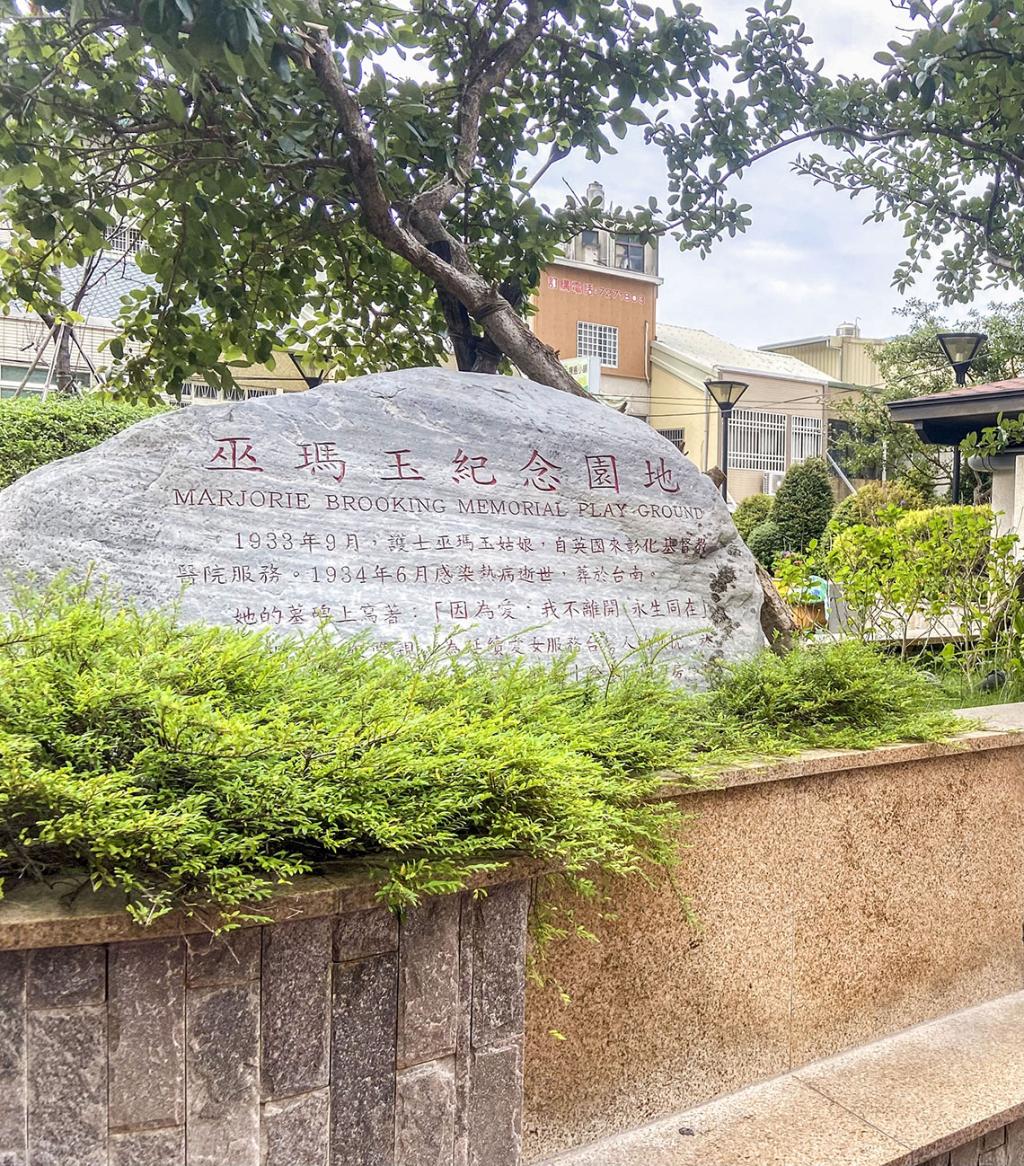 巫瑪玉姑娘(Miss Marjorie Amy Brooking),1906 年3 月14 日生於倫敦。1933 年秋天,她接受英國長老教會海外宣道會的派任,懷著堅定的信仰,離開家人和故鄉,隻身遠渡重洋,前來臺灣到彰化基督教醫院服務,擔任開刀房護士的工作。隔年夏天,臺灣流行病猖獗。她在和病毒激戰的第一線上,因勞累與和病患密切接觸,感染了熱病,雖經蘭大衛醫師密切醫治搶救,仍不幸於1934年6月28日去世。聽聞噩耗,巫瑪玉雙親悲痛不已。但他們最終將想念化為對女兒深愛的臺灣之奉獻,捐贈最新開刀手術房用「無影照光燈」給醫院,這是臺灣第一部無影照光燈。巫瑪玉過世後,雙親未將她帶回故鄉,而是安葬於臺南,安葬在這片女兒心愛的土地上。墓碑上更刻著她生前所說的一句話:「因為愛,我不願離開,永生同在。」(Love that will not let me go.)