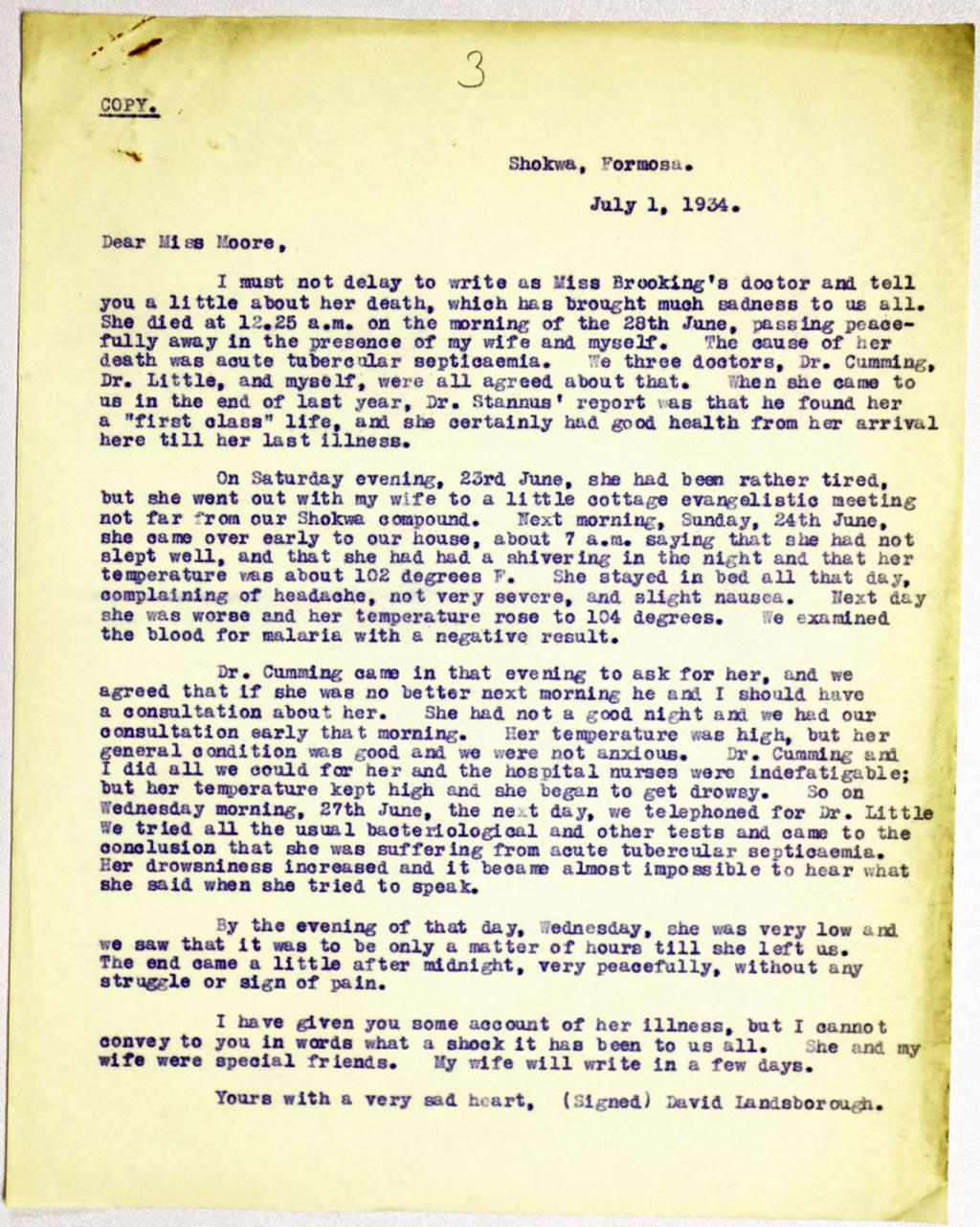 - 巫瑪玉姑娘死亡報告。典藏者:SOAS。發佈於《彰基文史博物館文史資料庫》