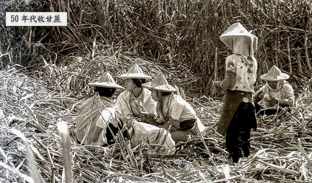 - 鹿港糖業車站是為蔗糖產業而建立的交通路線,圖為50年代的蔗田採收照片。來源網址:國家文化記憶庫