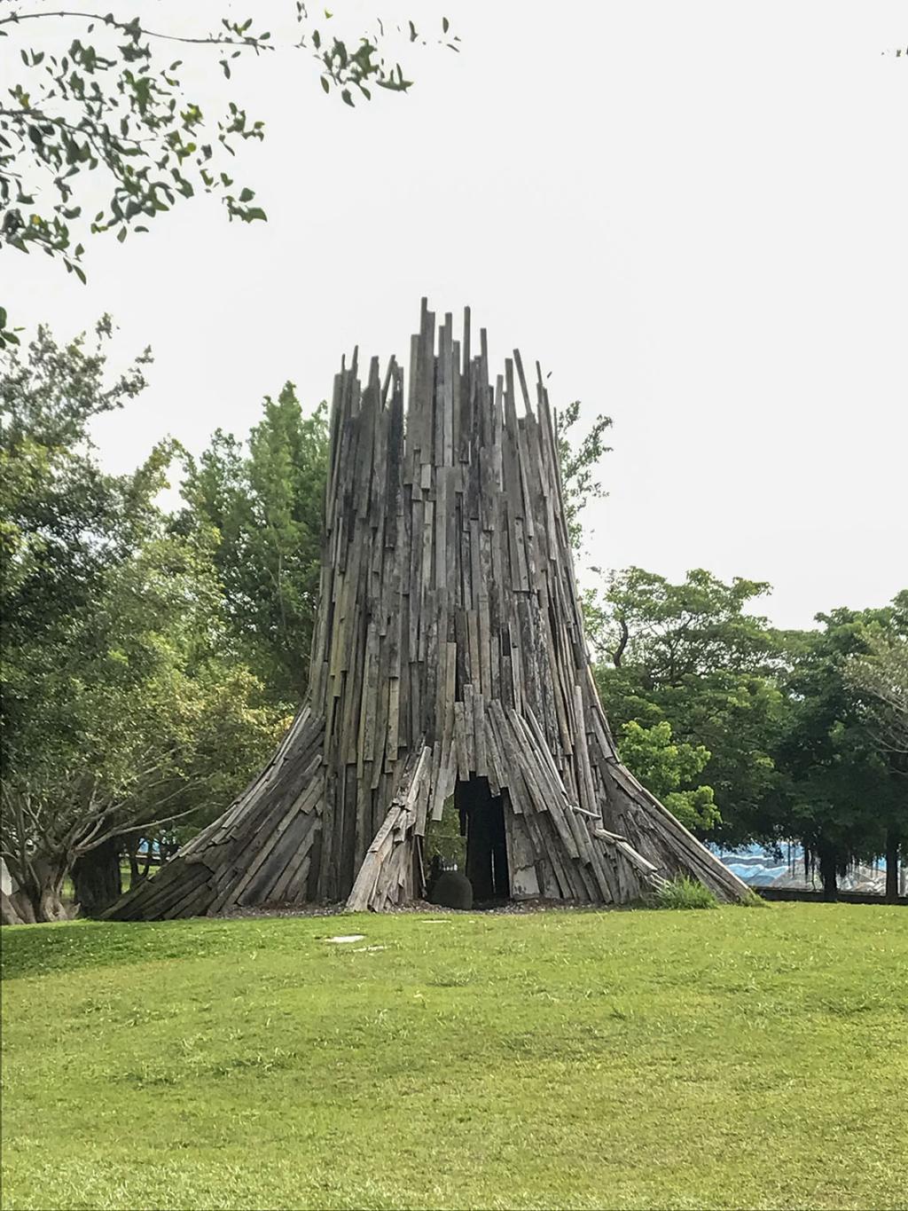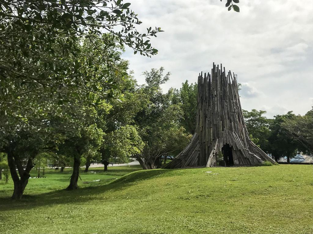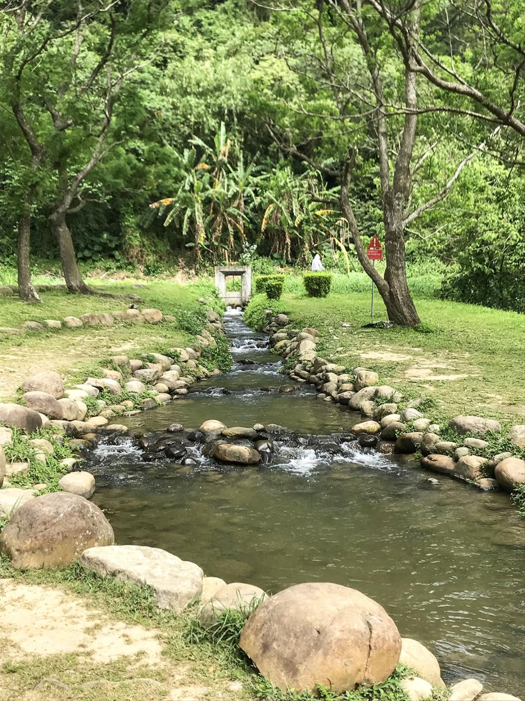 此外,公園旁即為大漢溪堤坊,沿著石階登上河堤,可遠眺石門大壩與大漢溪的沿岸風光;公園的後方則連接知名的樟之細路。公園內有浪漫台三線的裝置藝術:年輪下、浮草庵、水琴窟,及客家茶港:挑擔細路、山水慢漫、集貨橋。盛夏時節一望無際的綠油油稻田;秋冬稻作收割後播種下後的大片的波斯菊花海,演繹出賞心悅目的花海嬌點。
