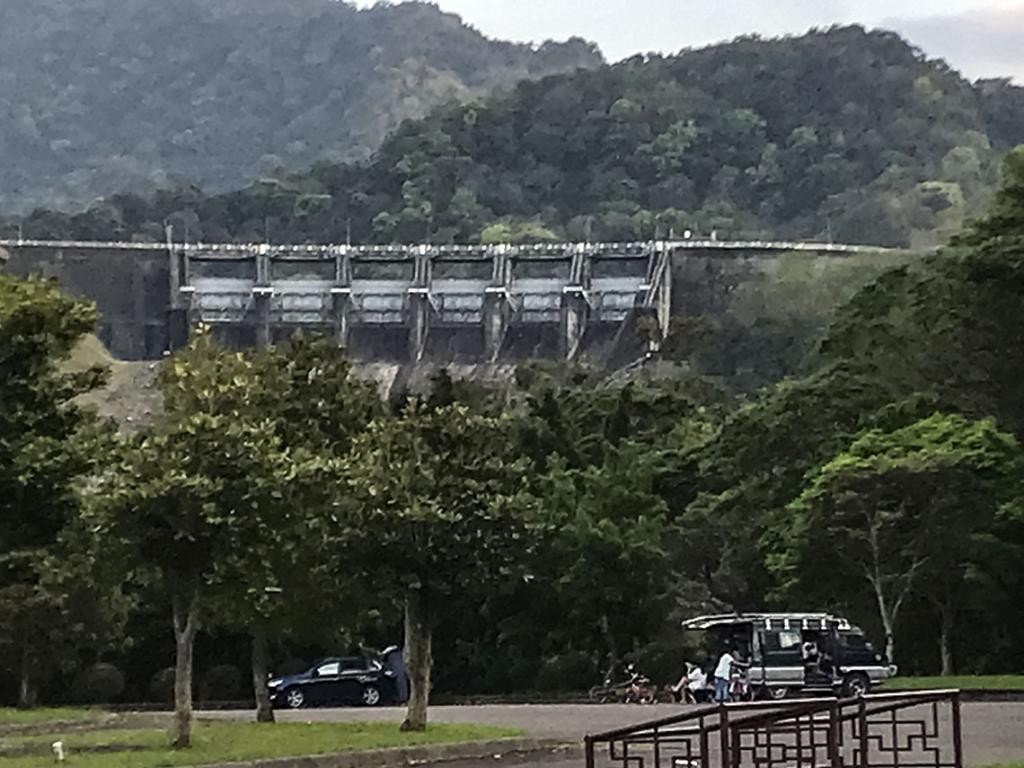 順著壩頂方向望去,整條溢洪道呈現眼前,想像著洩洪時如萬馬奔騰的氣勢,豪氣萬千。