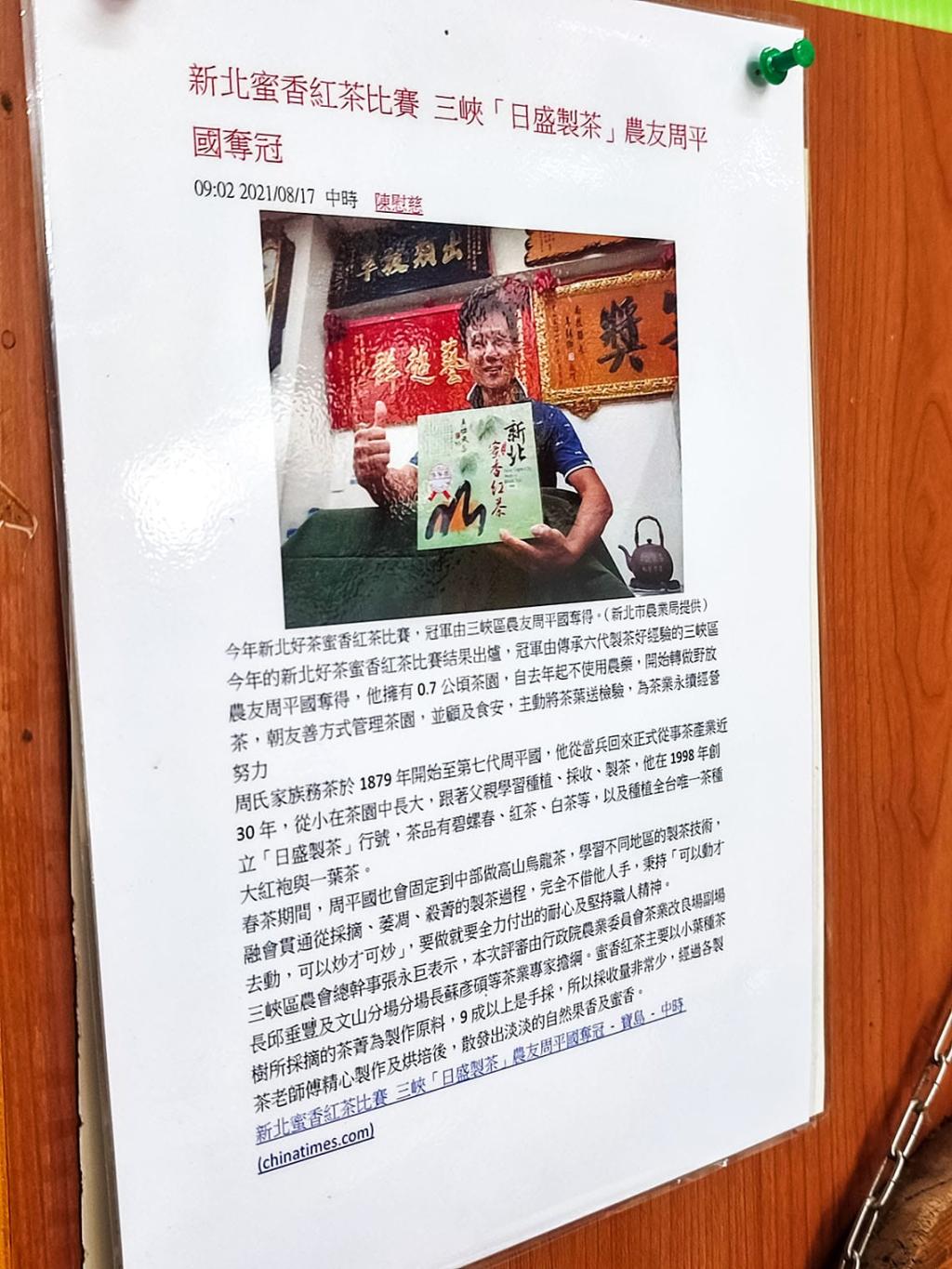 周平國先生繼承了父親製茶的好手藝,不但在新北市屢屢獲獎,甚至還遠征南部,以南部的茶菁、工廠加上周先生本人的技術,也在南投獲得特等獎的殊榮,也再次證明了三峽製茶師傅全方位的製茶技術。
