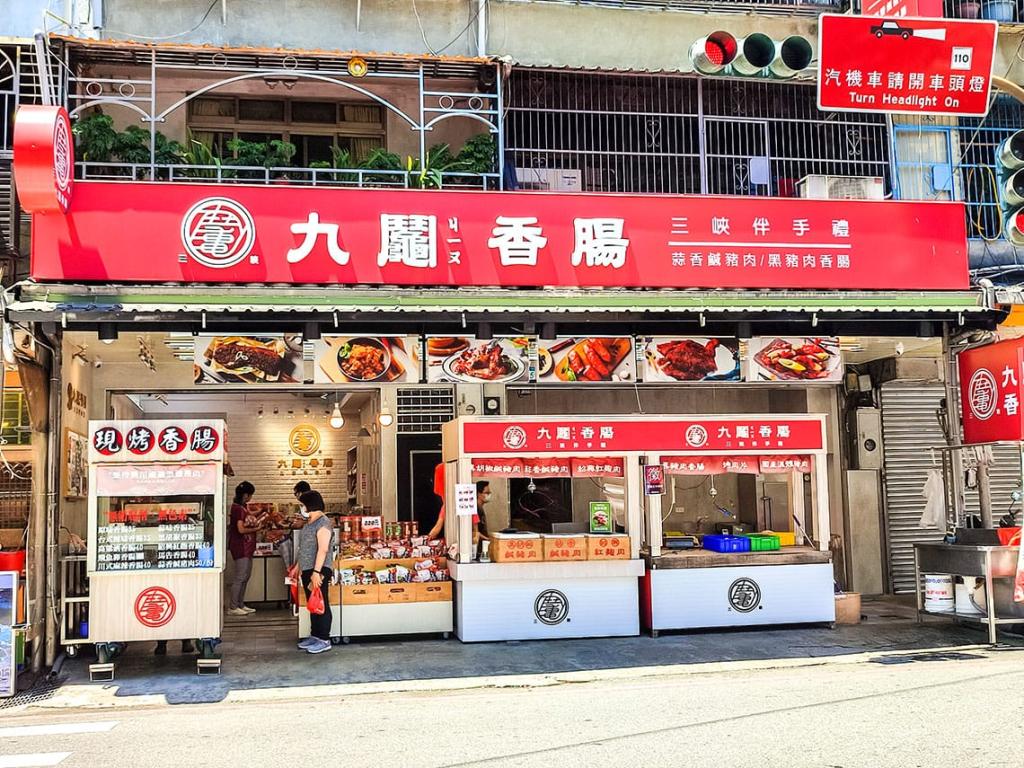 「九鬮」為三峽的古地名,清代拓墾時,以「捻鬮」(也就是抽籤)的方式進行土地的開墾分配,抽到第九股即被稱為「九鬮」,九鬮老街即今天的成福路一帶,日治時期為輕便鐵道,後來改為馬路。民國六十年代,由於成福茶市交易熱絡,當時包括大豹、竹崙、安坑、橫溪一帶的茶農,都會帶著現採的茶菁與製茶工廠進行比價交易,而這也順勢帶動周邊商家的繁盛,當時有豬肉攤、中藥行、西藥房、米行、雜貨鋪、打鐵舖、總鋪師等,讓遠道而來的農民可以添購生活所需,也有多家茶行在此經營販售。但在民國六十年代末期,隨著三峽茶產業的逐漸沒落,九鬮街市也逐漸蕭條,豬肉攤就轉型製作成香腸,目前共有李溪口、陳記、九鬮等香腸店家,造就「香腸一條街」的美名,假日遊客多來此品嘗烤香腸的好滋味。