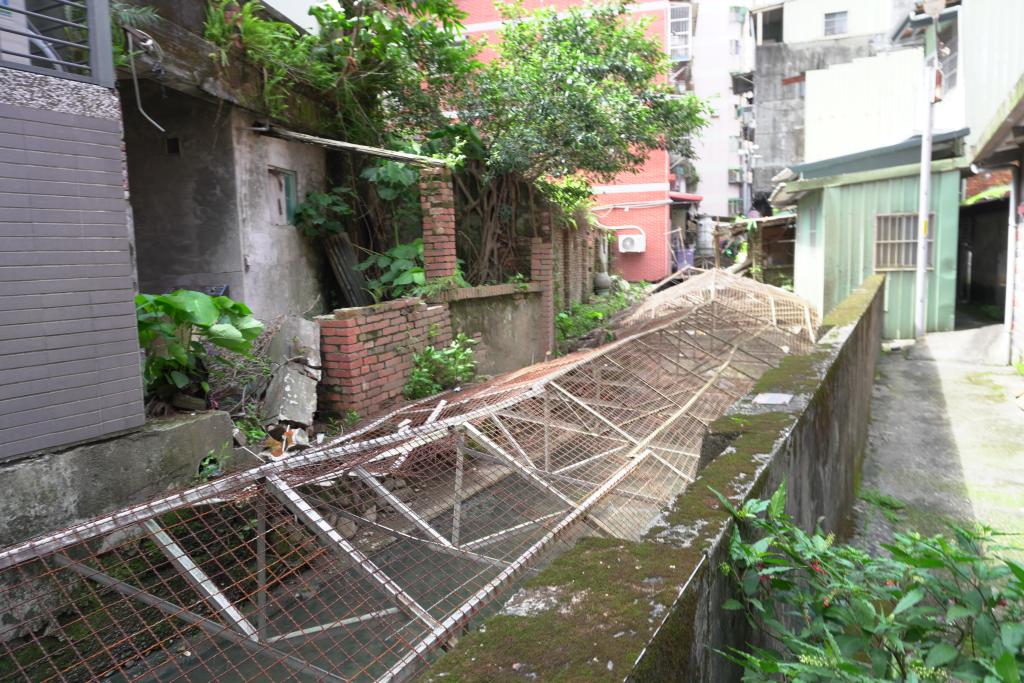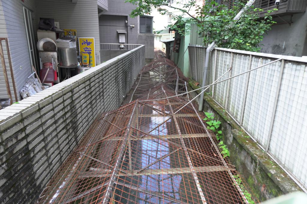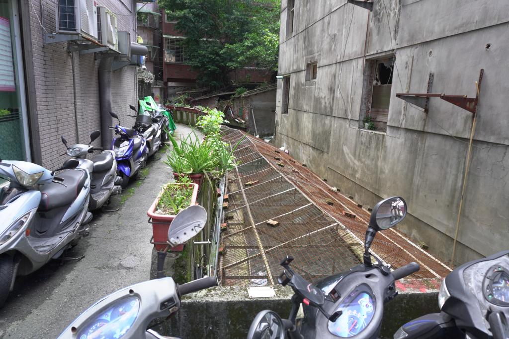 大坪林圳是清代乾隆年間形成的新店重要灌溉水圳:為避開感潮與洪氾,先在青潭溪匯入新店溪處以石笱抬水導流,因右岸岩壁受阻而鑿築「引水石腔」(今開天宮下方),乾隆二十五年(1760)通水後,成為新店主要灌溉來源,支撐在地墾作與輪灌。戰後因新店溪採砂致河床下切,改由大豐抽水廠幫浦取水,傳統水利遂走向機械化。今日渠線多已消隱,僅存零星小段改為巷內排水溝——走在「新店後街」這條昔日的「牛車路」,你會發現公寓樓房旁緊貼的一條大水溝,其實就是大坪林圳的舊路線;順著街巷折線與水溝走勢,仍可讀出這條以「石笱抬水、石腔過壁、上游取源」為核心技術的隱形水路,如何長期塑造新店聚落的空間紋理。