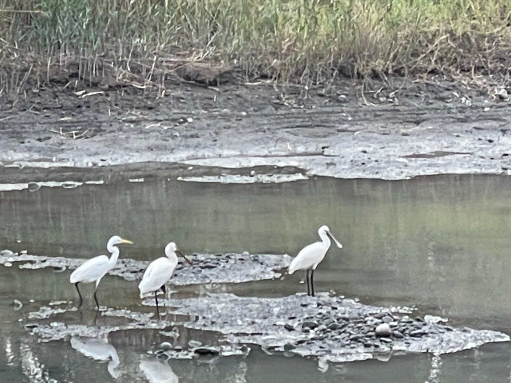 At the end area of the Touqian Creek, the preserved wetland environment surrounding the Jiu-Gang island serves as a habitat for intertidal species and a wintering ground for migratory birds. During winter, precious black-faced spoonbills and white spoonbills come to this wetland to forage. Urban water resource allocation and pollution incidents will impact the ecological sustainability of this wetland environment.
