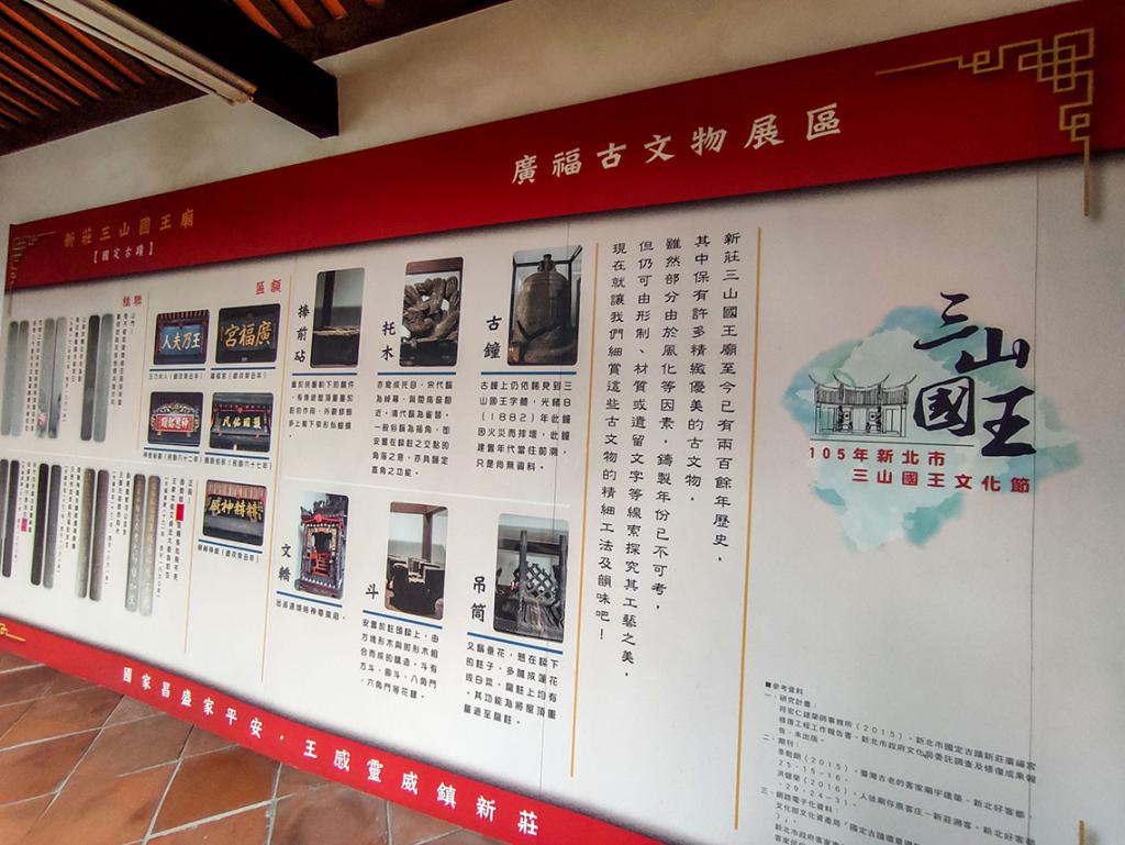 廣福宮主要的特色為客家建築,也是新莊唯一被列為新北市的國定古蹟,不但讓人們感受昔日潮州人在新莊的足跡,廟中所存的文物更可發思古之幽情。