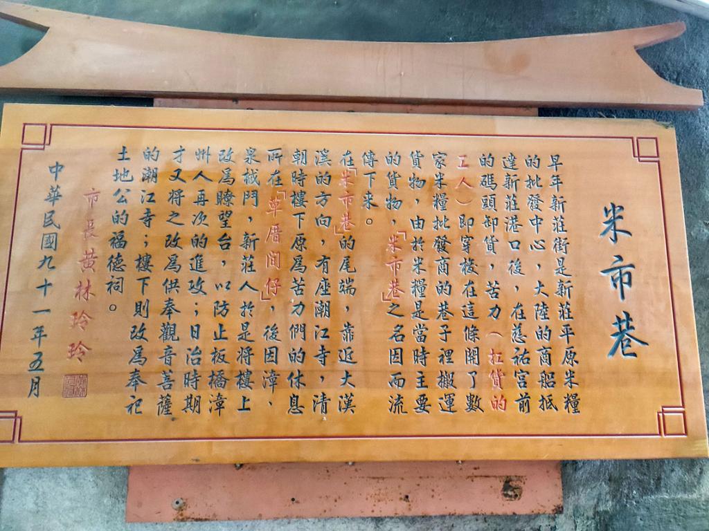 人文地景 listing-icon01 dark-mint 12米市巷 新莊老街走一回 精彩照片 景點介紹 語音導覽 景點地圖 相關影片 米市巷,係指新莊路287巷,當地人稱「米市巷仔」。早期新莊老街的米店多及中在挑水巷與武聖廟之間,當時的米不僅可以供應北臺灣,還可以外銷到大陸,米市街的店家雇請工人扛著米袋或是將米袋放在梨阿卡(放置米袋的板車),穿梭在米市巷搬運貨物,工人累了就會在巷底的潮江寺樓下休息,所以這兒又被稱為「草厝間仔」。當您信走於此,也可遙想昔日熱絡與繁盛的美好時光。 撰稿者 海山文史導覽團隊 北部 人文地景 listing-icon01 dark-mint 25.033743 121.451325 12米市巷 > 北部 數位走讀 立即體驗數位走讀地圖