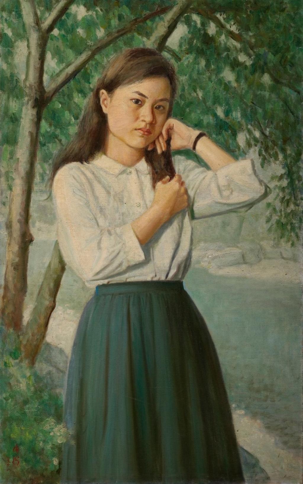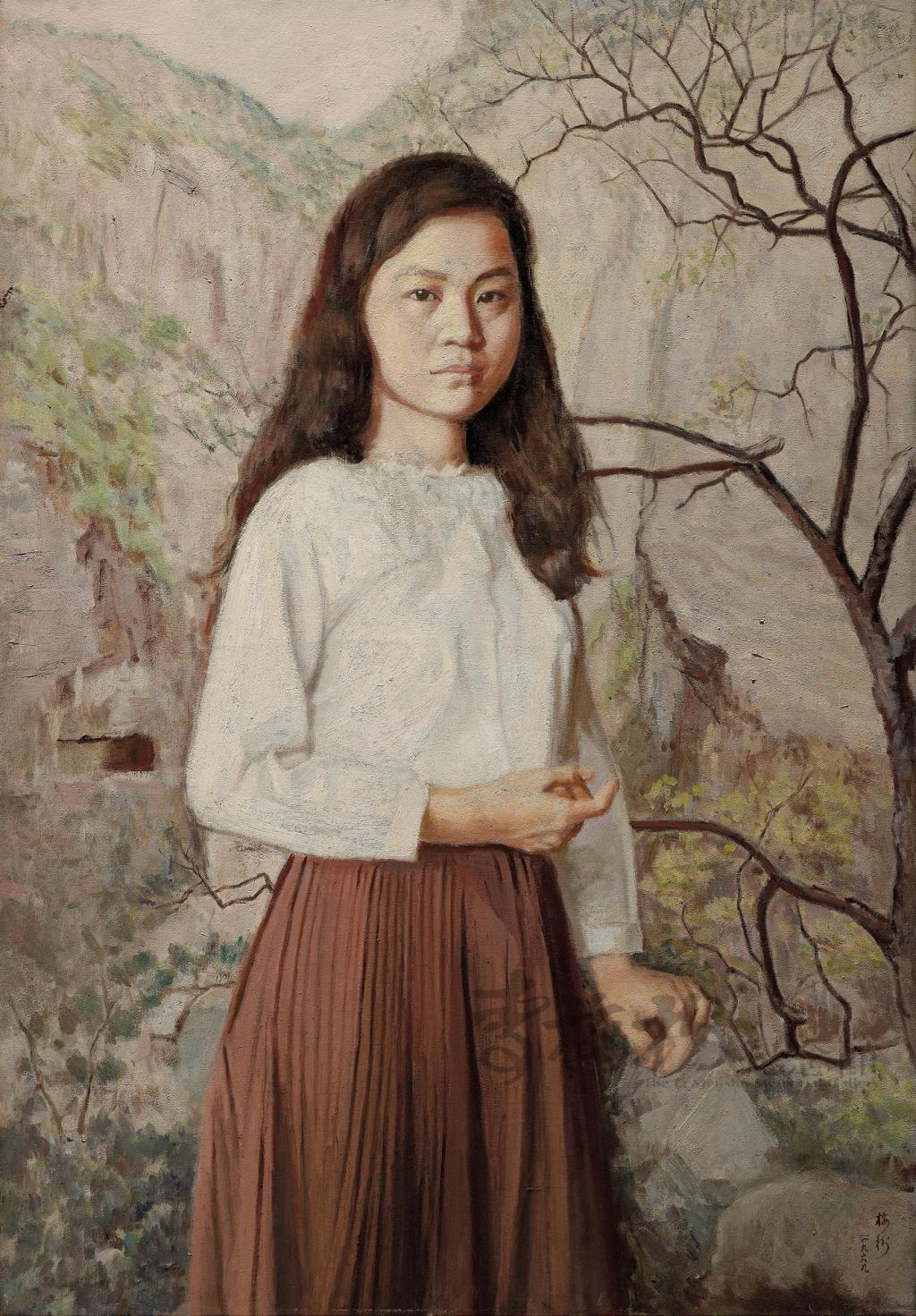 《春光》是李梅樹創作於1969年的油彩作品,尺寸為50P(116.5x80cm)。畫作以一年輕女性為主角,是李梅樹任教國立臺灣藝術專科學校(今國立臺灣藝術大學)時期,美術科西畫組的學生。畫中女子微微向左側身,頭部則轉向正面,眼神直視畫外。女子留著一頭長捲髮,穿著白色長袖襯衫搭配半身深紅色百摺長裙。左手似是撐扶著什麼,導致小指較高而其他四指自然彎曲著垂下。右手自手肘處曲起、手腕處撐直,而手心朝向自身、手指自然張開。畫家對於人物肌理的描繪十分細緻,光滑而無明顯筆觸,右手手背突起的血管也清晰可見。人物後方為太魯閣風景,李梅樹曾造訪太魯閣並留下了多幅描繪太魯閣的畫作。而背景彩度與明度皆較主角人物來得低,有空氣氤氳、烘托主角的效果。