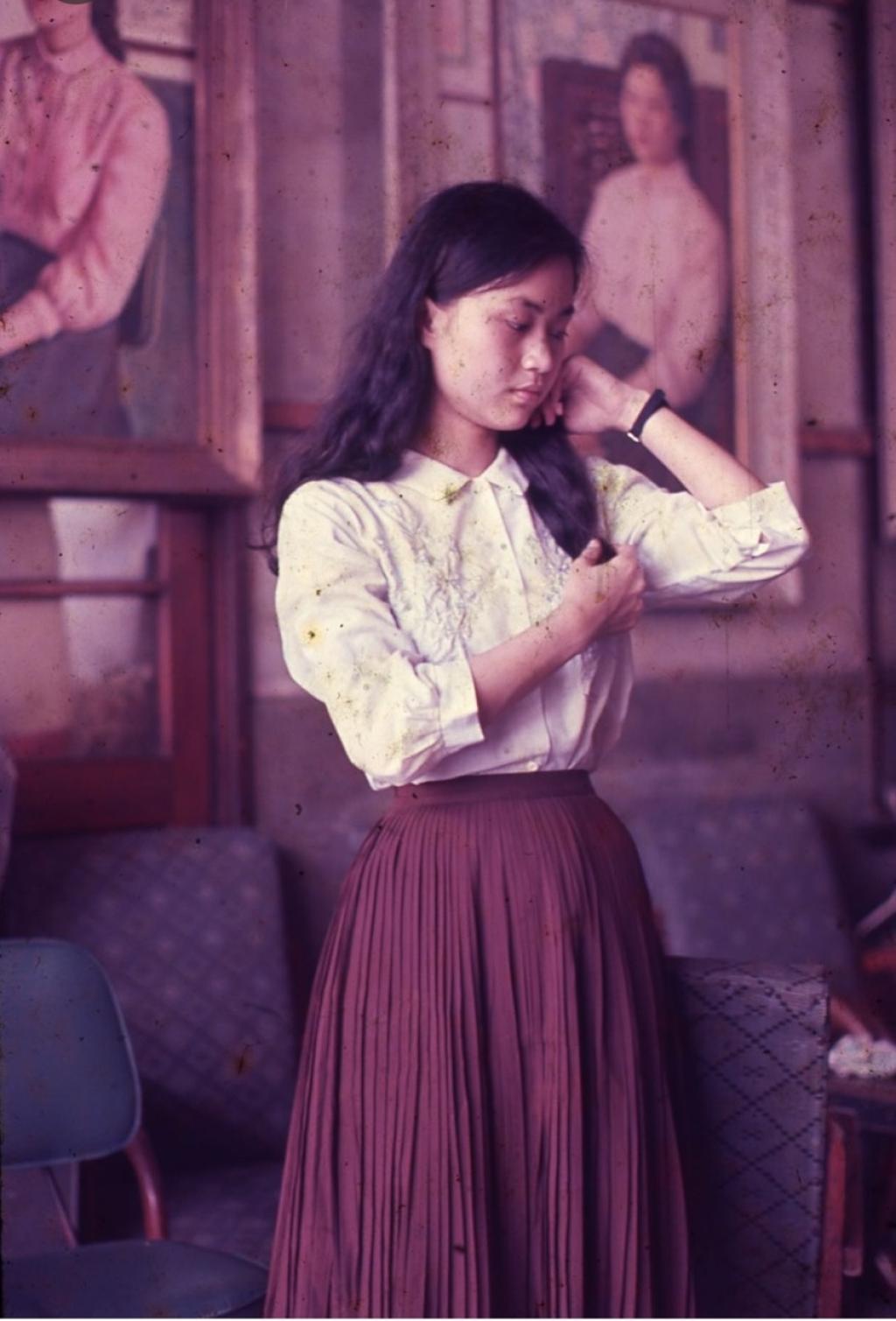 李梅樹在構圖時,常有組合畫面的情況,並會依畫面需要加以調整。此件《春光》中的人物,與《盼望》(1968)、《梳妝》(1970)為同一人,並有留下請模特兒擺弄姿勢的照片。一系列照片拍攝於李梅樹的樹林畫室,與照片相比對下,除了看見畫家對於人物寫實性的追求,亦可見精心安排、調整的痕跡。如,《春光》一作所參考的照片中,模特兒左手輕扶椅背,而在畫面中畫家則以岩石取代,使畫面整體變得更為和諧與合理。