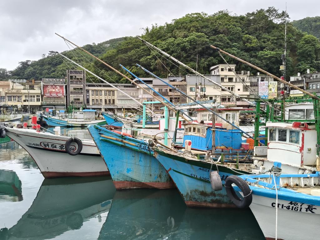 畫中可以看到幾艘船停靠在港邊,它們的倒影清晰地映在水面上,與寧靜的海港相映成趣。李梅樹以細膩的筆觸描繪出水波紋,捕捉到水面的微妙起伏和波動,使得整個畫面更加生動。透過對水面的精細描繪,他巧妙地展現了水的流動感和光線的折射效果。
