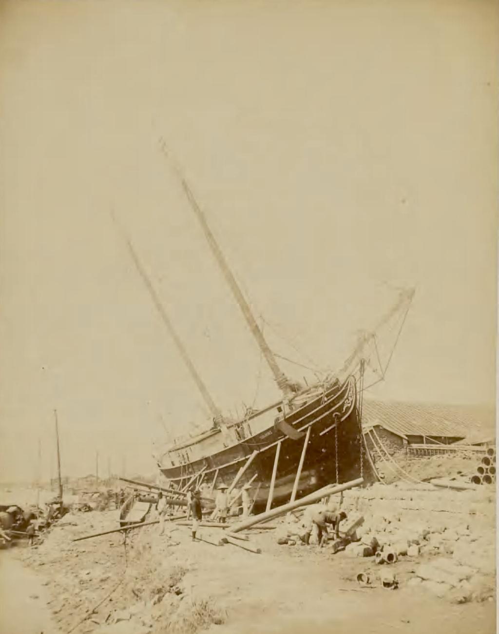大稻埕碼頭的治理,從清末的「港務優先」起步:劉銘傳時期以建昌公司為引擎,帶動臨河低地填築、鋪設街廓與築堤,新市街(港邊街、千秋街、建昌街、六館街)逐步成形,奠定碼頭與市街共構的基礎;1896年的影像已可見沿岸出現低水護岸與碼頭設施,用以維持靠泊與裝卸的連續性。
