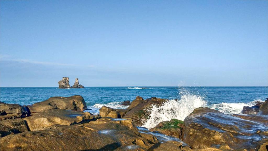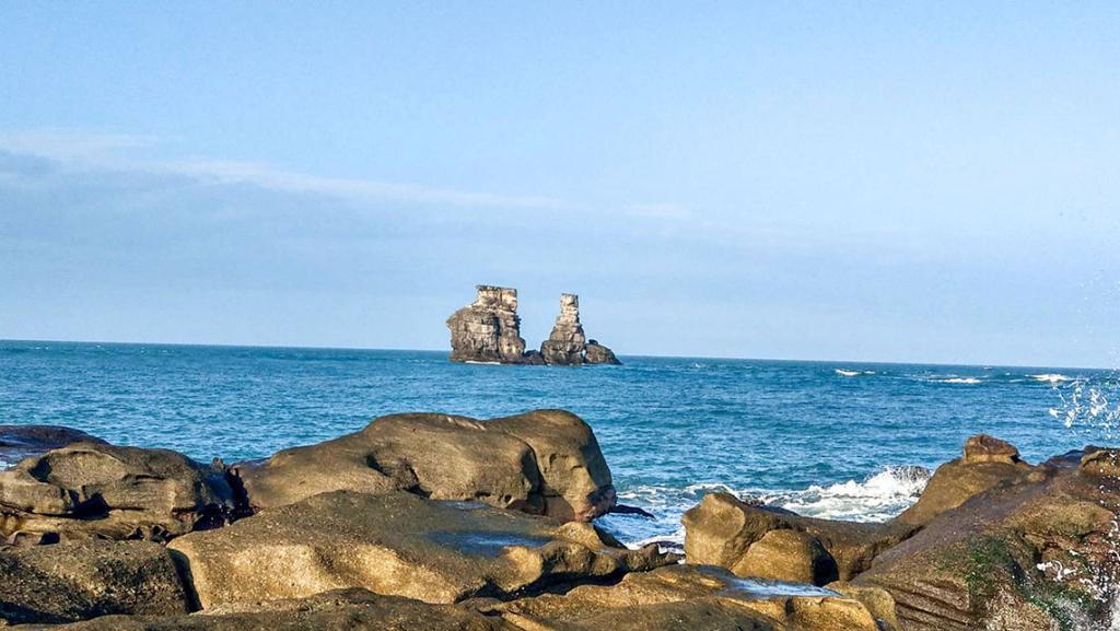 自然地景 listing-icon04 yellow 07燭台嶼 溫泉、磺火捕魚、與魚路古道 精彩照片 景點介紹 語音導覽 景點地圖 相關影片 燭臺嶼高約60公尺,有著淒美「夫妻石」的傳說故事,這裡原本是金山岬的一部分,後因板塊運動形成橫直交錯節理的岩石,再加上海水及風不斷地侵蝕結果,使其與岬角分開,小小的海島經過長時間的海浪侵蝕,下方的海蝕洞逐漸貫穿成海岬,形成類似石門的海拱,後來海拱頂部崩塌,形成兩座海石柱形的顯礁,石柱岩基相連,水面上分歧為雙嶼,外形像兩座燭臺,所以被稱為「燭臺雙嶼」。 撰稿者 鄭敬儀、陳昭宏、林文杰、謝依萍、王怡文、余玥林、李政學、陳信全、林嘉慧 中文語音導覽 Your browser does not support the audio element. 領讀人 高郁芳 北部 自然地景 listing-icon04 yellow 25.232973 121.654667 07燭台嶼 > 北部 數位走讀 立即體驗數位走讀地圖