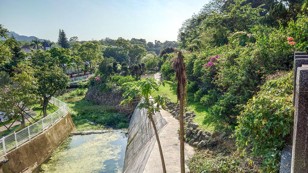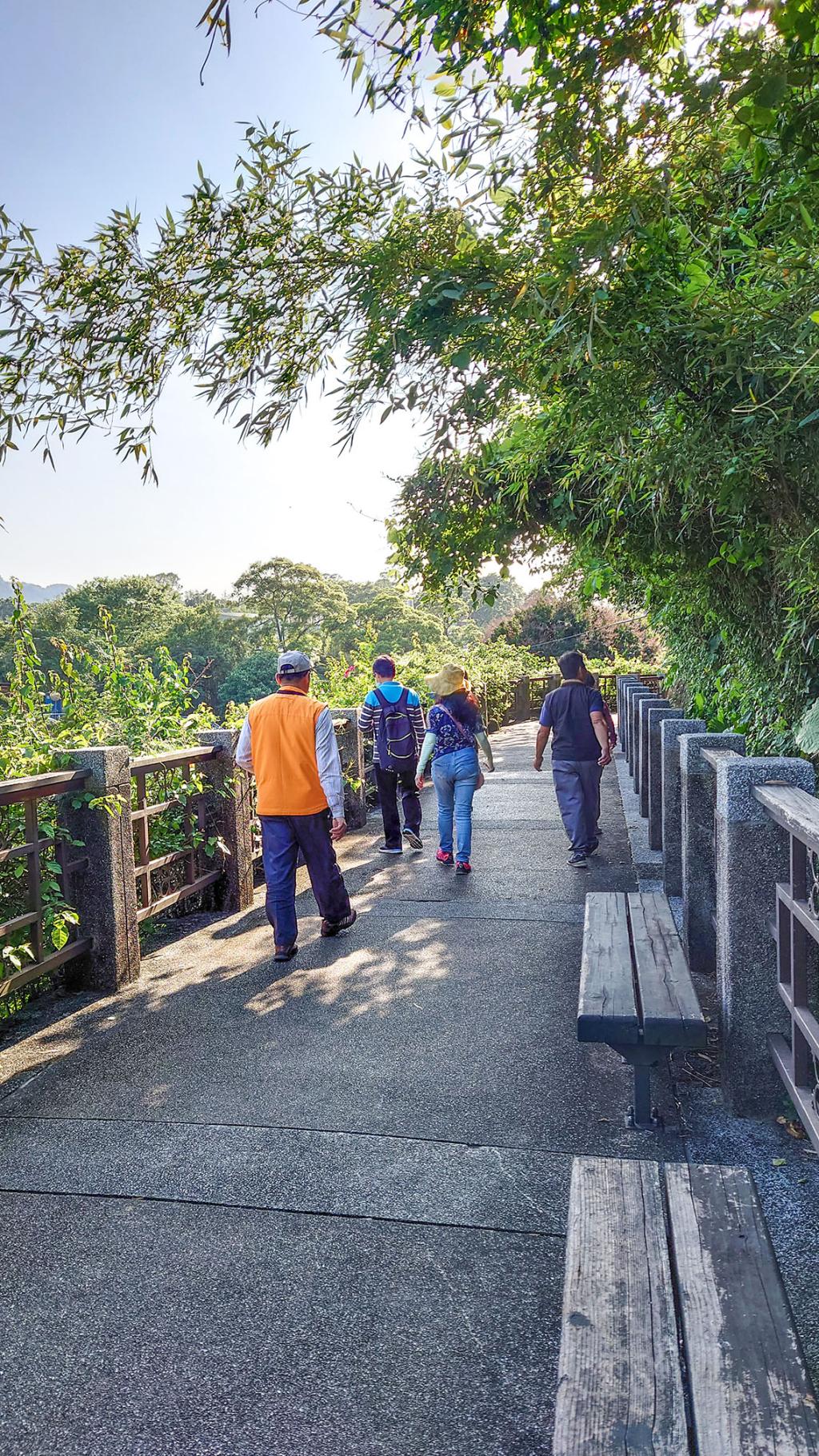 寬闊的步道,沿著草嶺山下延伸,路旁即可看見知名的草嶺石(多氣孔玄武岩)。洗石子為路面,除了一開始的前一百公尺,有石階階梯外,其餘路段都是平路。步道大致與臺7線(北橫公路)平行,由於緊鄰草嶺溪,沿著溪畔步道就可以欣賞到天然溪流美景,偶有白鷺鷥優雅飛過,點綴著簡明的草嶺溪生態解說牌,還有沿途相伴的潺潺溪水聲,聽來非常療癒,是大小朋友戶外踏青的好去處。