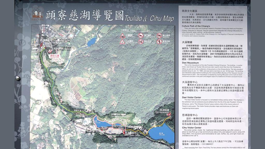 2009年完成的「頭寮生態步道」連接了兩蔣文化園區,環境自然規劃完善,稱得上是一條五星級的步道,其起點在頭寮陵寢旁,終點為慈湖紀念雕像公園,全長1.2公里,是遊客到訪與當地居民散步運動的綠色廊道。
