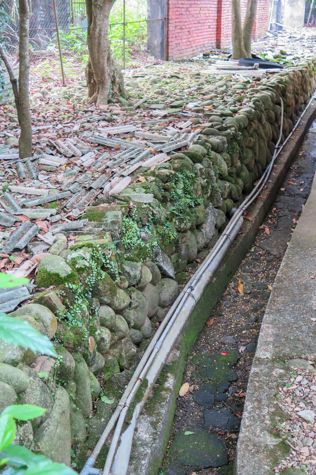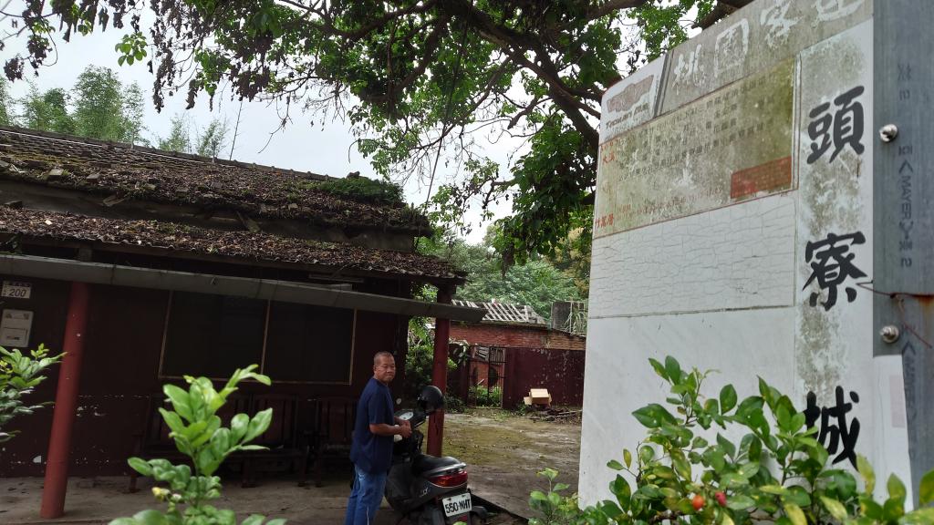 走上十一指古道後,就到了位於三層地區的「頭寮城」。頭寮城顧名思義,可知在拓墾時期,是當時跟隨梅鶴林家的墾戶所居住。為了抵禦泰雅族人的攻擊,在聚落外圍種滿刺竹,用石頭築起防禦工事,形成一個聚落,稱為「頭寮城仔」。至今聚落裡,仍有許多傳統的紅磚古厝,雖然圍牆已經毀壞,剩下部分的石頭駁坎存在,還可見到當時留下的石敢當。只是,由於頭寮產業沒落,多多人去樓空,走在往前竹篙厝產業道路上,眼前所見,老樹、古井、紅磚牆以及緩步前行的耆老。與對面林立的依託邦社區色彩亮麗的大樓,形成明顯對比。