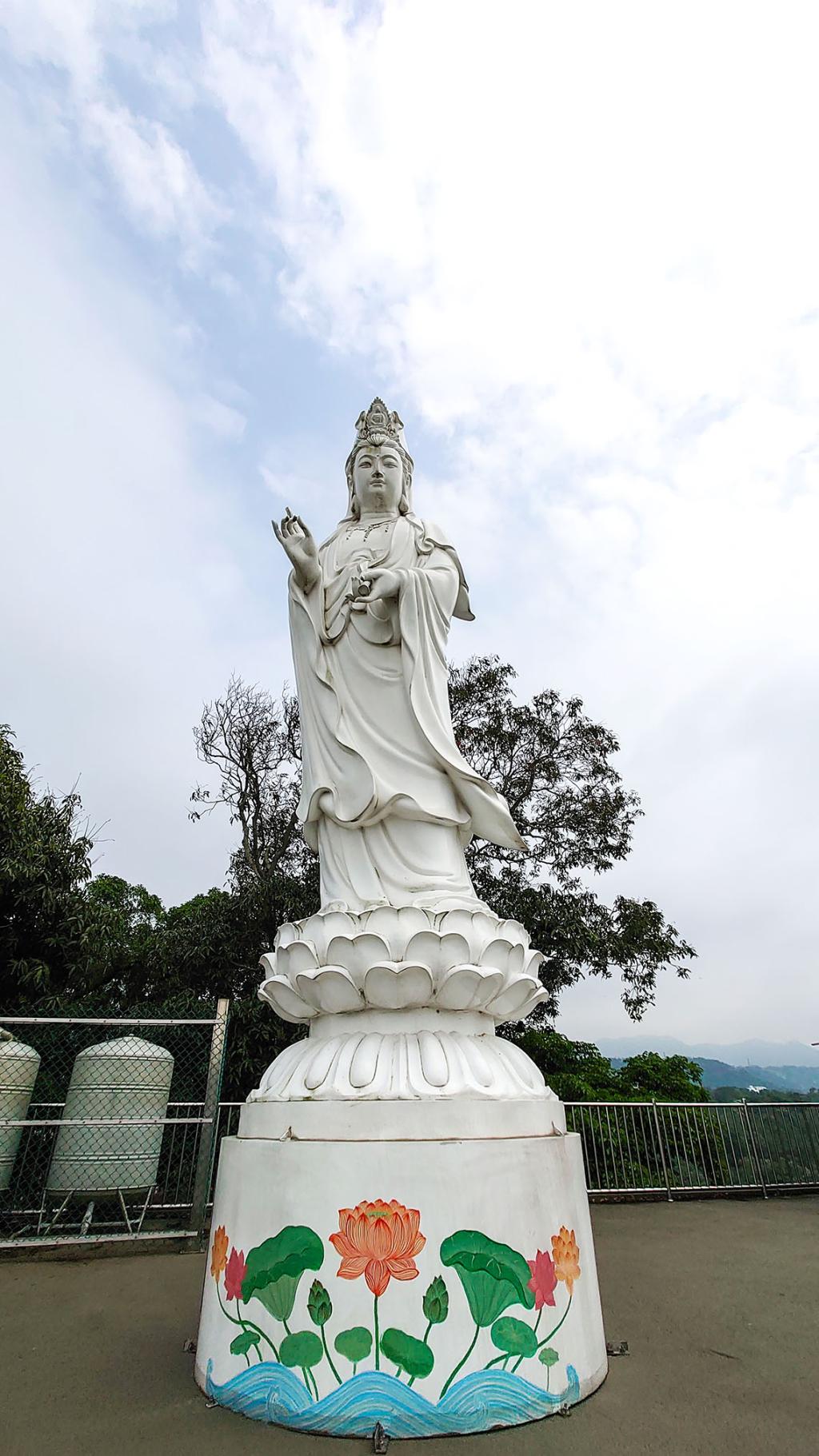 【二百餘年來,蓮座山觀音寺為桃竹苗三地客家族群信仰中心之一,進香信徒眾多,現為桃園市定古蹟。廟前廣場可遠眺大漢溪河谷優美景色,「蓮寺曉鐘」景緻名列大溪八景之一。 方文樹、林炯任】