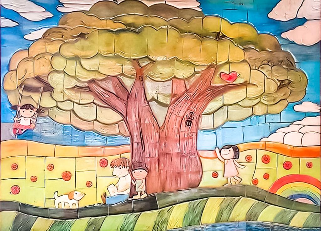 此藝術品設計理念延伸自鄉土穿廊中所設置的--「生命的搖籃」。作品中將紀錄景美區生活的老照片製作成窯燒影像,結合童趣的陶版作品,黏貼在藍色蜿蜒的景美溪溪流中,宛如訴說著潺潺而流的景美溪和景美人相濡以沫的關係。而作品上多彩豔麗的花草意象圖,則是刻畫景美區有著仙跡岩等美麗的山川美景。