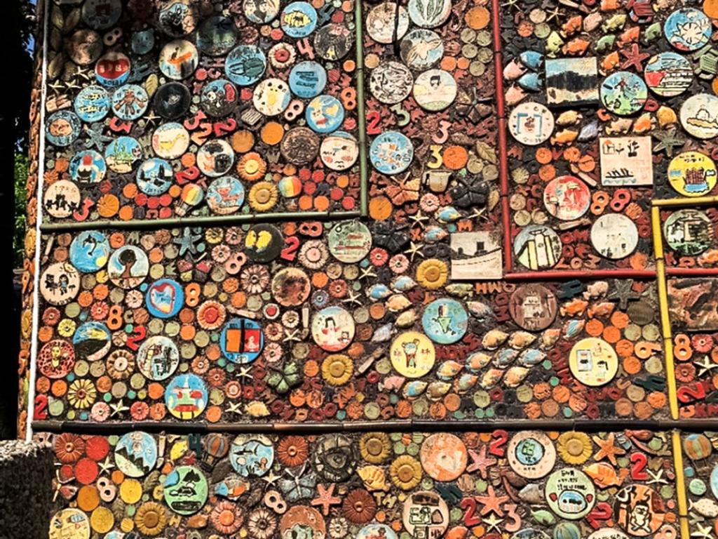 走近景文街景美國小,映入眼簾的便是景美國小圍牆邊,兩座大型的藝術作品,這是景美國小為了推廣鄉土教育,讓孩子了解家鄉的地理環境和人文,於2012年聘請藝術家黃耿茂先生,利用景美街48號古厝拆下來的舊建築物件,透過藝術家的獨特眼光,以景美溪和當地居民的互動關係為創作理念,讓舊建物賦予新生命,創作了四件公共藝術作品,分別為:時光的探索、生命的禮讚、未來的哩程、生命的搖籃。