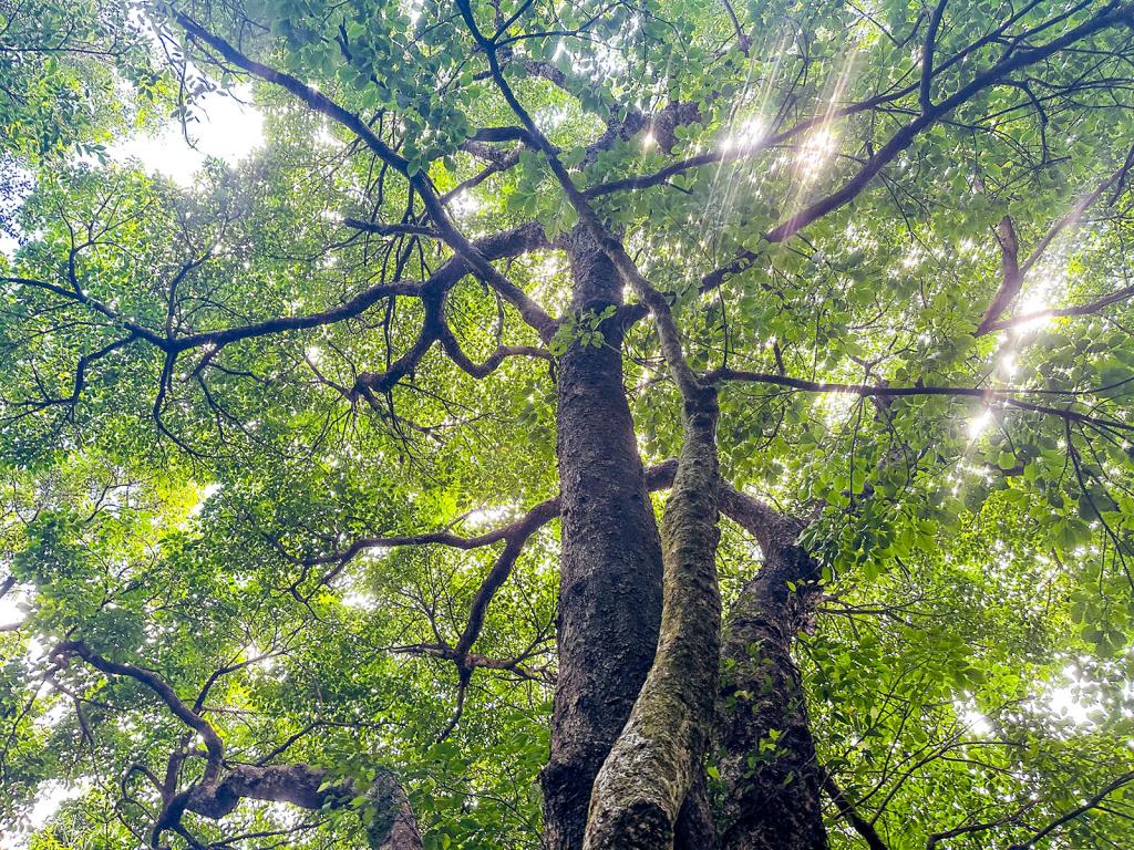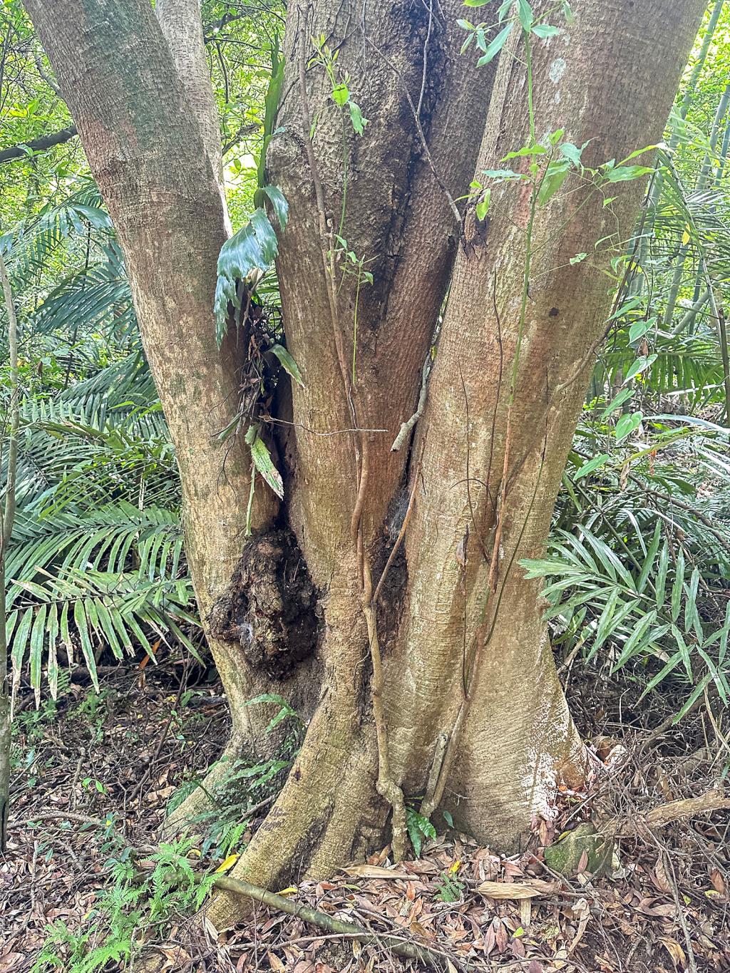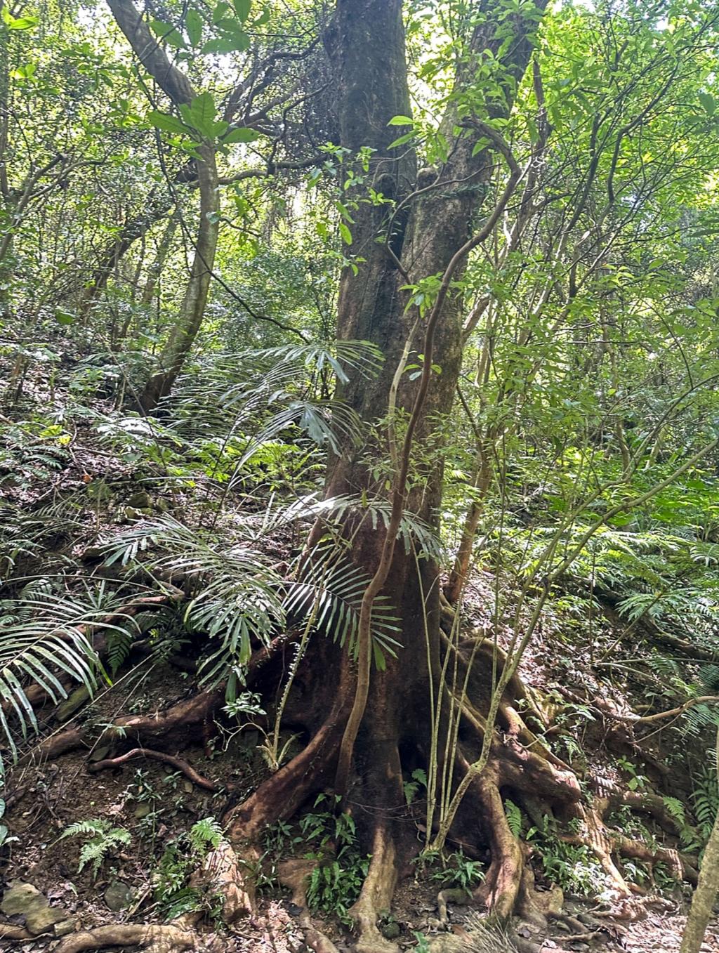 續往前,左邊出現一條長形凹地,因潮濕的環境,凹地邊長著幾棵大茄苳。潮濕背風的山徑,讓九芎、茄苳、山棕、菲律賓榕等植物生長良好。不久平緩的山路變成上坡,往上即到海拔308公尺的分岔稜線,往右接福源山步道,往左可達海拔361公尺的鶯歌、龜山、樹林交界的望湖山百年大榕樹觀景臺。這是一條值得大家尋幽訪勝的優質步道。