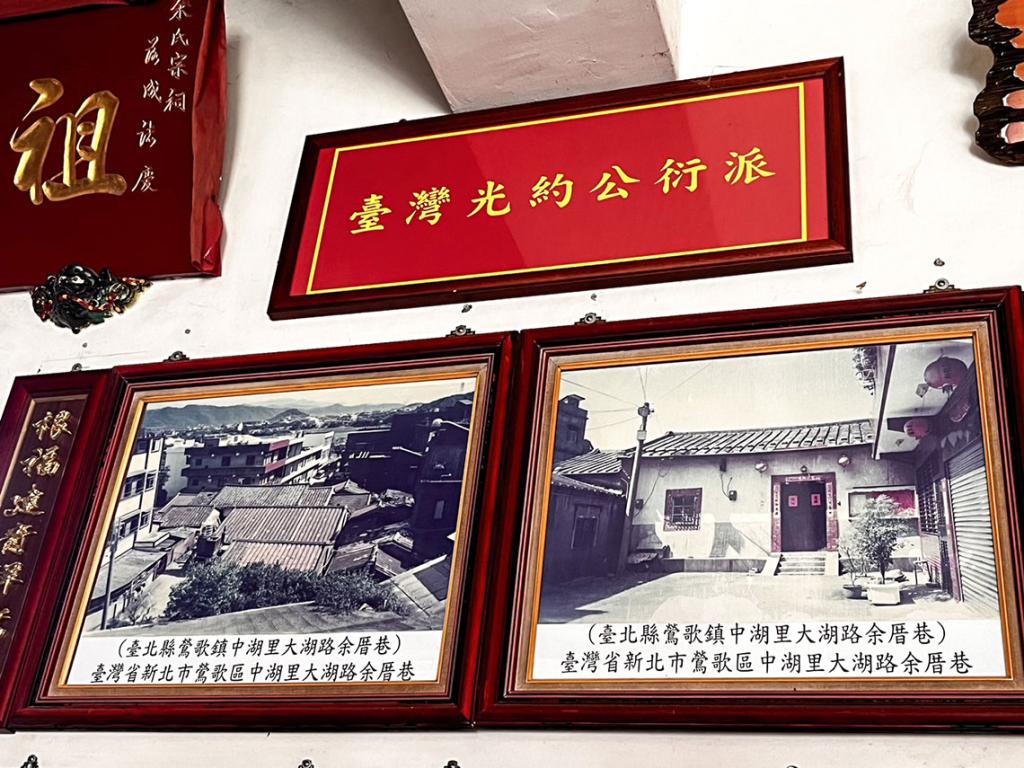在青陽廳中的簡介提及,余氏來臺祖先光約公於清康熙57年(1718)生於福建省泉州府安溪縣龍興里九車青陽鄉,乾隆5年(1740)隻身渡海來臺,於今桃園內壢區(昔稱崁仔腳)墾荒拓基及綿延子嗣。後人於嘉慶25年(1820)遷入新北市鶯歌區中湖里崁腳地區。