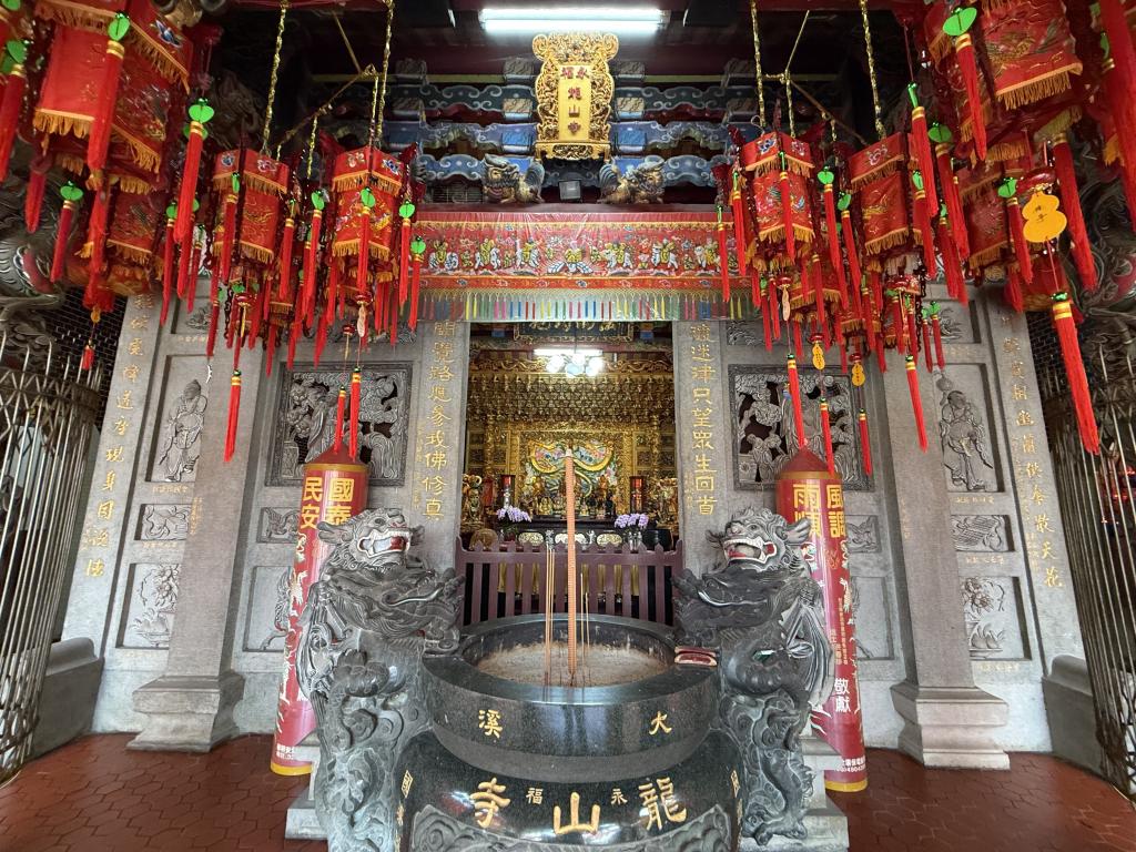 2006年整修後的龍山寺,山門氣勢莊嚴,晨鐘暮鼓庭台樓閣,飛簷雕飾精巧,色彩鮮明。廟宇屋頂覆以琉璃黃瓦金碧輝映,石雕、剪黏工藝繁複華美,展現匠師之精湛技藝。廣場設有花園與涼亭,景緻清幽,視野開闊,充滿静謐之美。大殿供奉觀音佛祖,兩側陪祀天上聖母與福德正神,右廊地藏王殿內,供奉開山始祖黃龍安、黃龍松昆仲祿位。拜亭右前方設有罕見的「孤魂臺」,專為普渡無主孤魂,助其早日脫離苦海,得登彼岸。