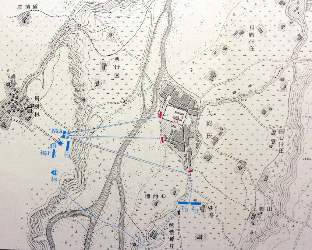 進入坊城後,章少佐所率領的支隊,沿土地公坑溪谷欲前往大嵙崁(今桃園市大溪區)進軍時,遭到義勇軍包圍伏擊。經兩晝夜血戰後,日軍死傷達數百人,史稱「分水崙戰役」。