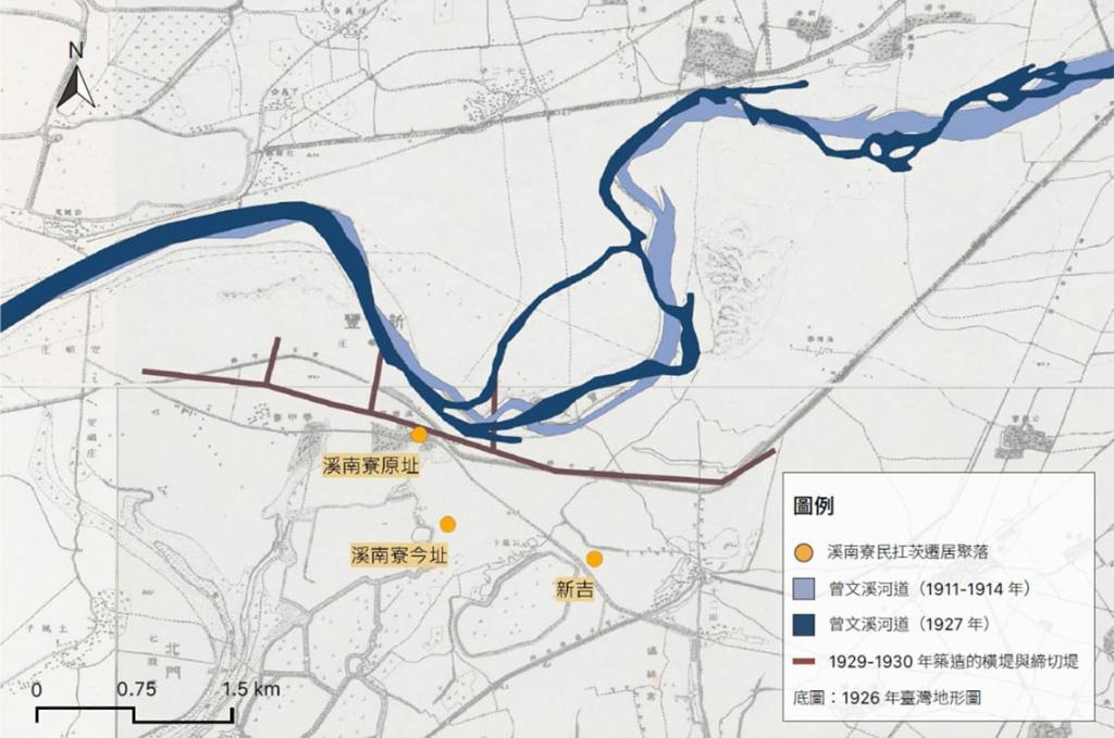 多數溪南寮居民遷移到自己耕作的田地,就在原居地南方不遠之處;也有離開舊聚落,搬去集資購買的土地,如新吉庄便是18戶溪南寮人在大水後向十二佃庄民購地新建的聚落。「扛茨走溪流」,靠的是全庄互助的情誼,體現防災、救災中最重要的「社會資本」。居民間的社群意識及互動網絡,往往是協力救災、重建及從災變中快速復原的韌性來源。