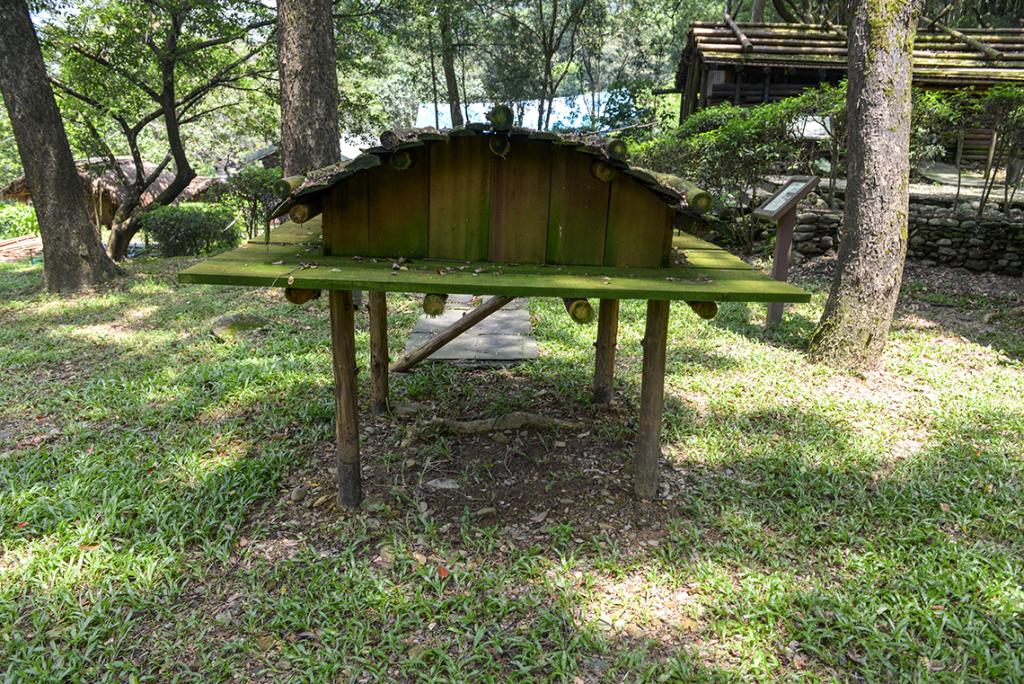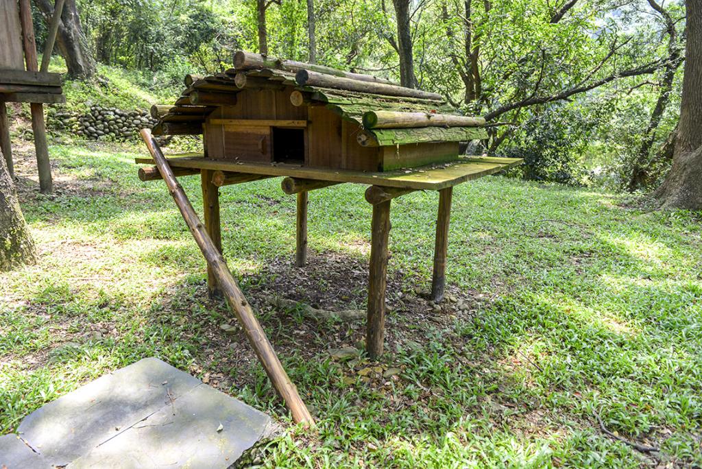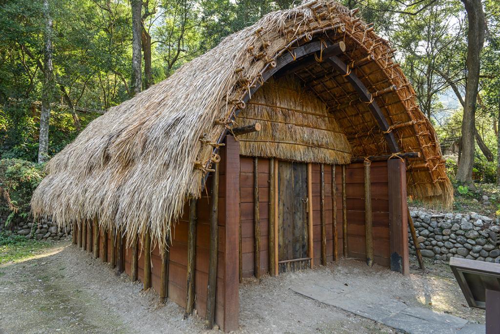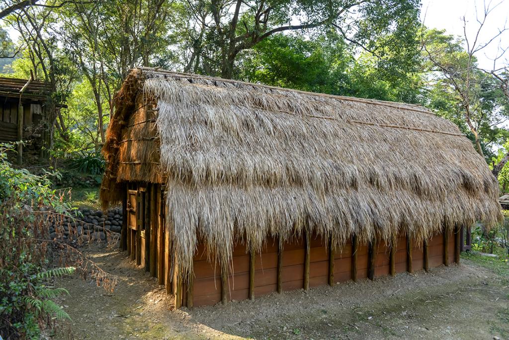 Originally built in Datong Township, Yilan County, it is a half-underground house with a thatched roof and wooden walls. Firewoods are stacked around the house, which serve as a wind protector. There is a woven bamboo bed at each corner in the house. The bed on the right is for the eldest couple in the family, and on the left is for women and children.