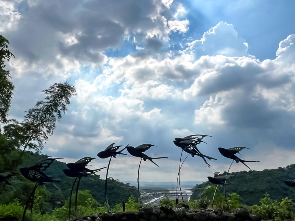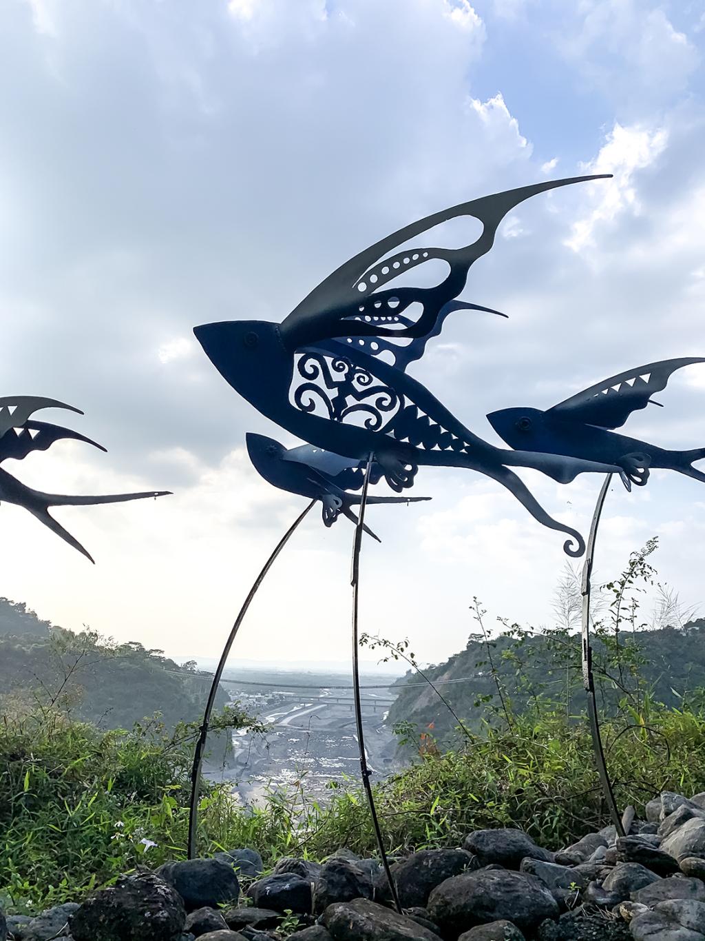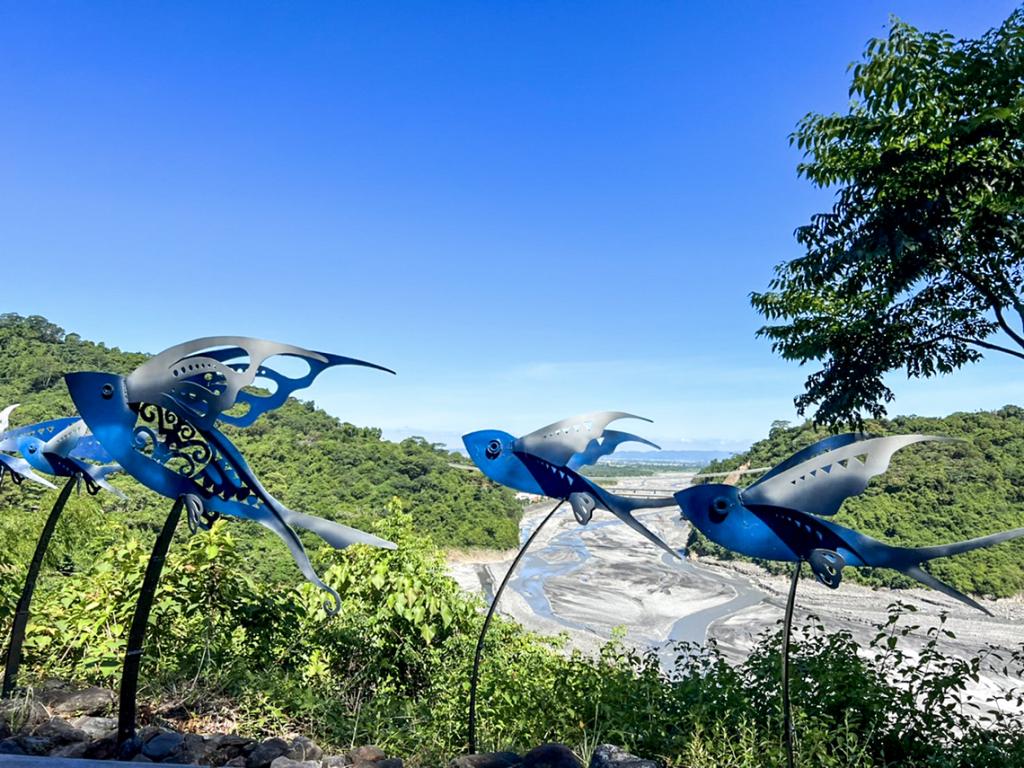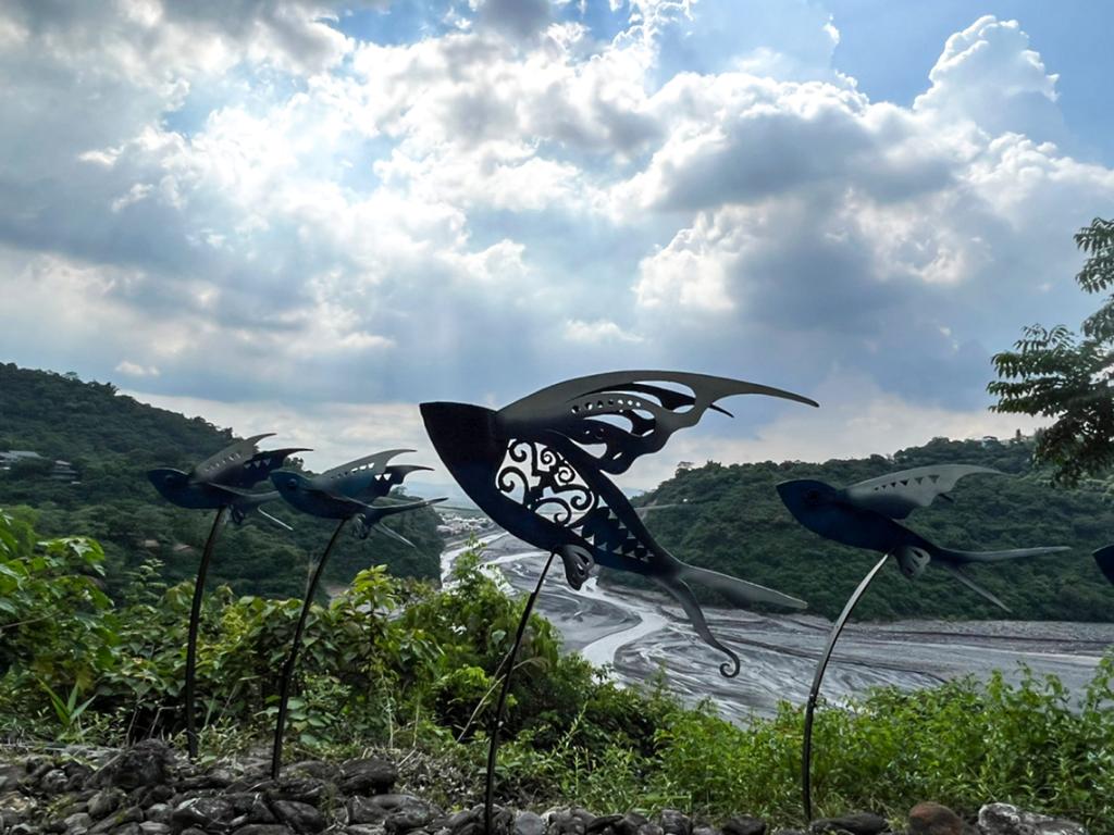 Accompanied by river valleys, mountain forests and the incomparably blue sky, whenever passing by Kulele’s works of flying fish it is hard not to stop and be amazed by this imagery of flying fishes and the river view in the distance. Kulele recalled the inspiration for his creation ❰ The Flying Ethnic Group❱ completed in 2001, and said that the indigenous cultural park is a place where various ethnic groups of indigenous peoples gather. So, he hopes to see the beauty of these different ethnic groups here. Also, since he has always wanted to go to Lanyu to learn about the Yami (Tao) culture, he shaped his imagination of Lanyu through his creation.