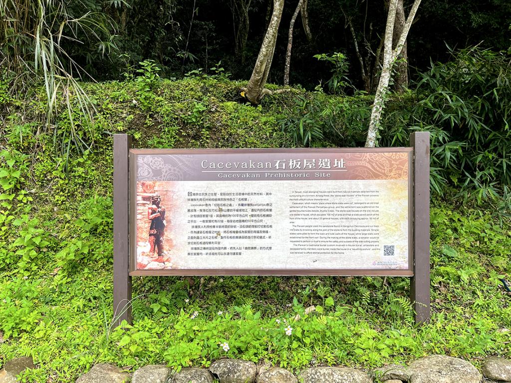 cacevakan意為「切割石板之處」,係屬排灣族paliljaliljaw群之舊部落,聚落位於竹社溪畔山腰的平緩坡地上。遺址內的石板屋,計有頭目家屋1座,其面積約為100平方公尺,屋前有石板鋪設之平台;一般家屋約有22座,每座佔地面積約50平方公尺。 從步道走進遺址,懷抱著敬畏與感恩的心,共同體會原住民的祖先們,在這片土地上胼手胝足,努力孕育出與自然和諧相處的生命智慧。