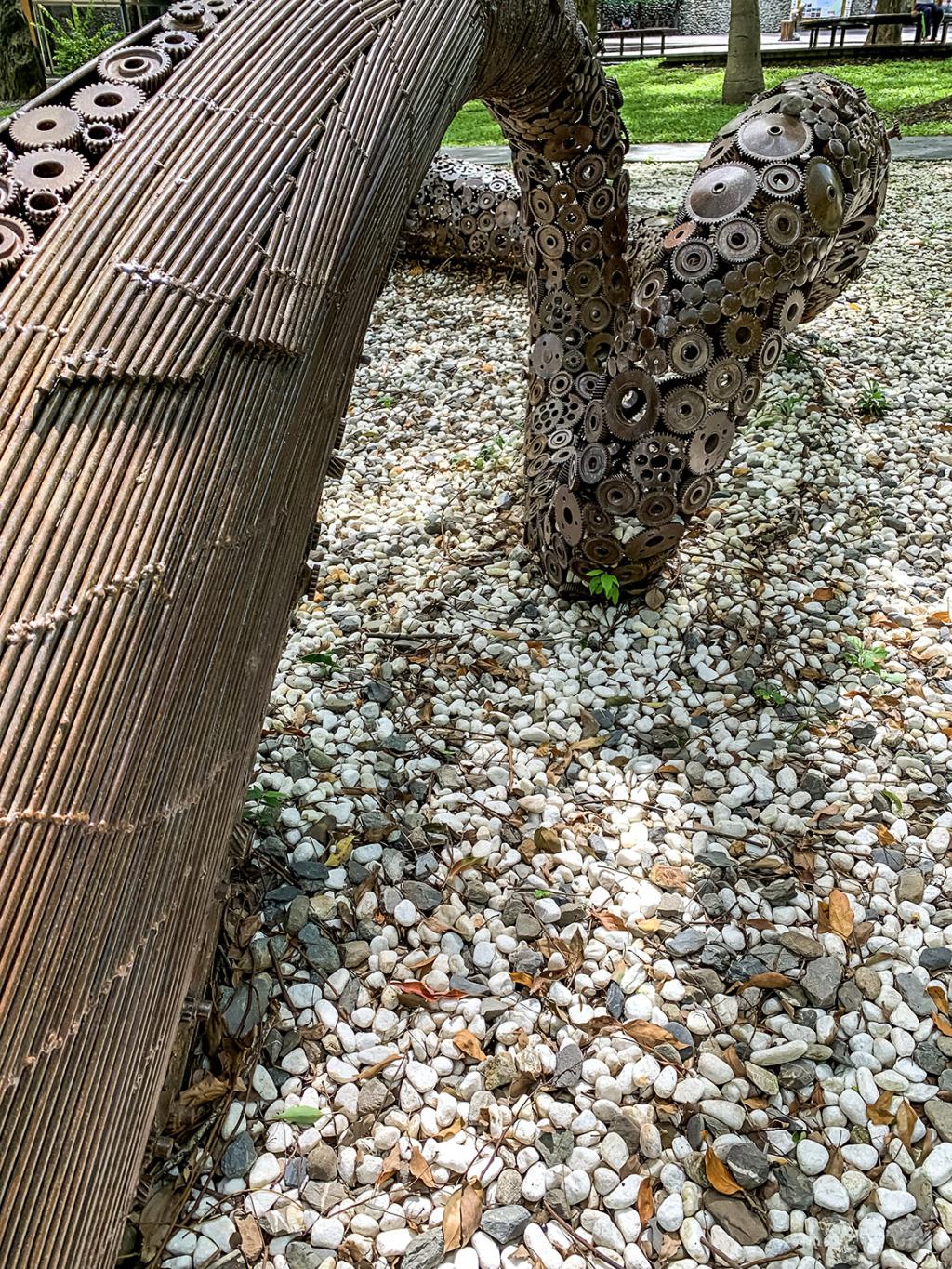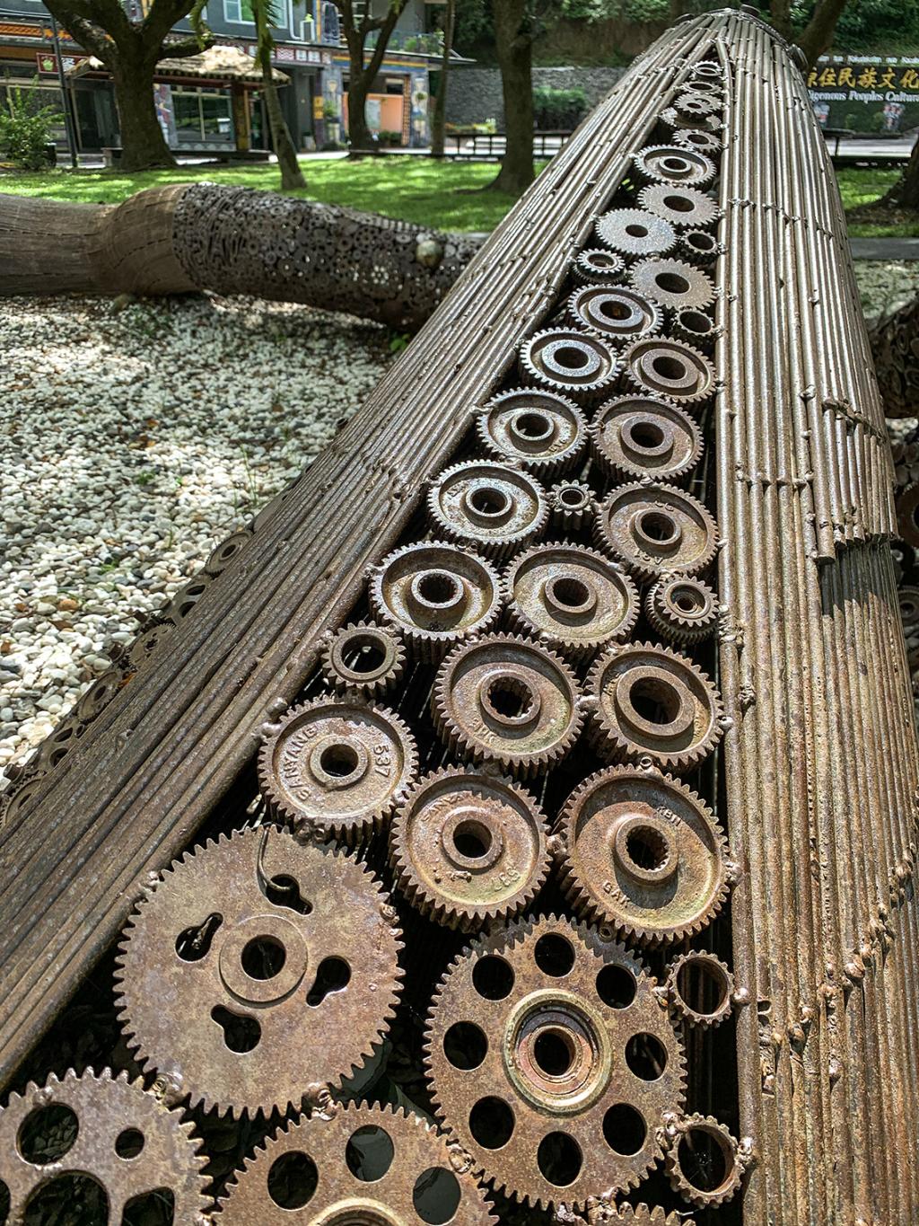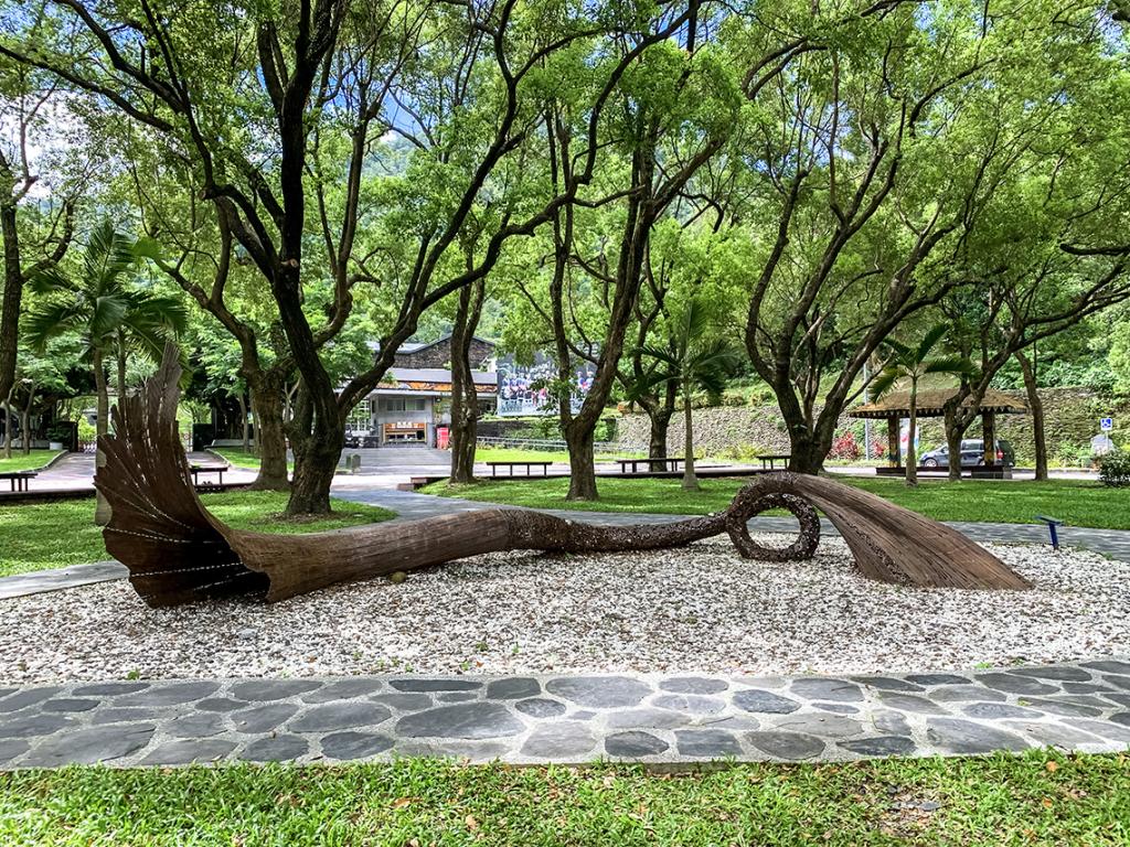 This is the third sculpture of the <Necklace> series. The first necklace was inspired by the birth of Kulele’s child, who was born in Hualien. The woman from that village named the child Cangaw, which means necklace in Amis language. Veceqel is the Paiwan word for a necklace that has many glass beads. Just like the other necklaces in the series, it contains the concept of homogeneity that the sun, earth, and mother nature coexist with all living creatures. Similarly, the deep relationship between ethnic blood and culture.