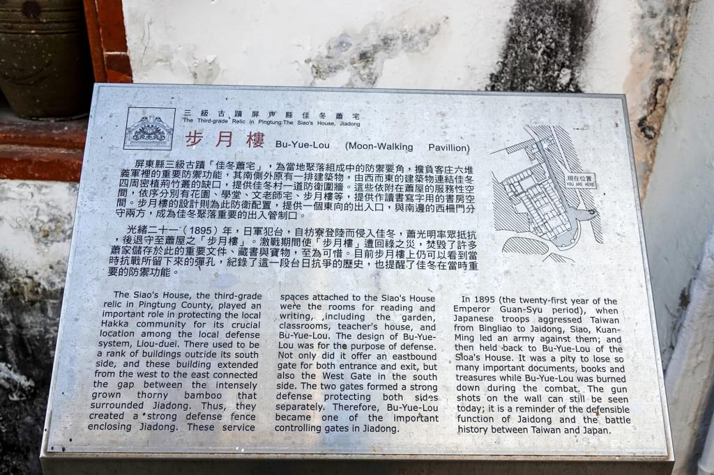 步月樓位於佳冬蕭屋外側,乃蕭家的書房。由於蕭屋緊臨清代聚落邊緣的東柵門,原在蕭屋東南外側有步樓、文老師宅、學堂等一排房舍形同舊茄苳聚落的一道防衛牆,然而1895年步月樓之役,目前僅餘步月樓建築,原步月樓所典藏的清代書籍等珍貴文物也一併在戰亂歲月中消失。