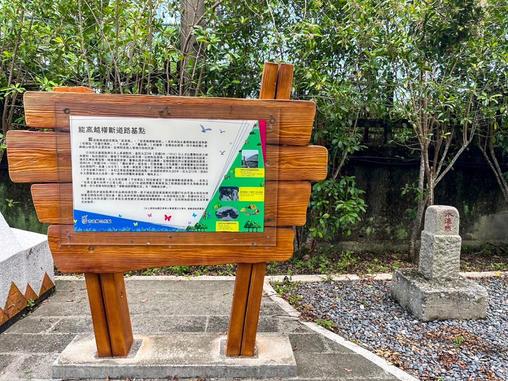 修築完成後,日軍在初音驛立下「能高越橫斷道路基點」碑,記錄「從是至臺中州界十三里七町」。為了紀念艱辛的開路過程與殉職者,在現今西寧寺附近豎立了「橫斷道路開鑿記念碑」與「殉職者之碑」。雖然「能高越橫斷道路基點」已不復存在,但吉安鄉公所在此立了一座「能高越道路起點」的標示牌,並展示了修築時發現的1925年立水準點石碑,作為當時測繪與道路建設的重要歷史見證。