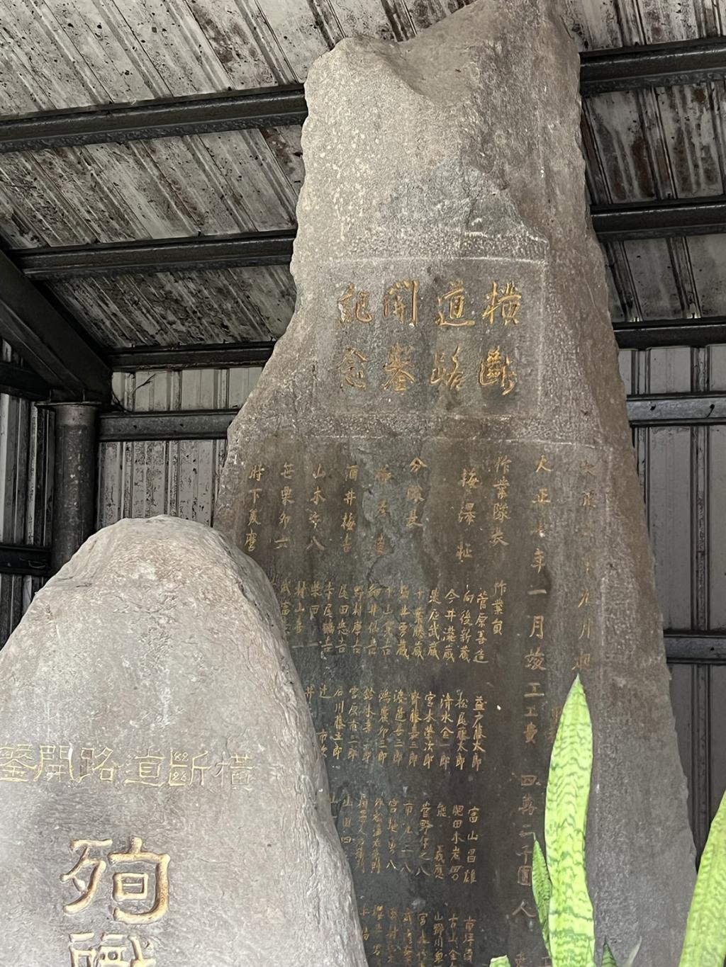 橫斷道路開鑿記念碑記載了這條道路的修建過程。碑文記述了1917年9月開始修築、1918年1月竣工的詳細歷程,參與修路的工人多達3.6萬人,警備員則有8500名,耗資4萬2千圓。這條橫斷道路連接初音與奇萊主山,見證了日治時期的重要開發工程。殉職者之碑則用以紀念那些在修築過程中不幸殉職的工人與警備人員。碑文簡潔而莊重,記載了殉職者的姓名,以表達對他們的尊敬與追悼。